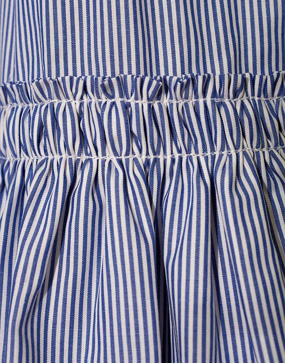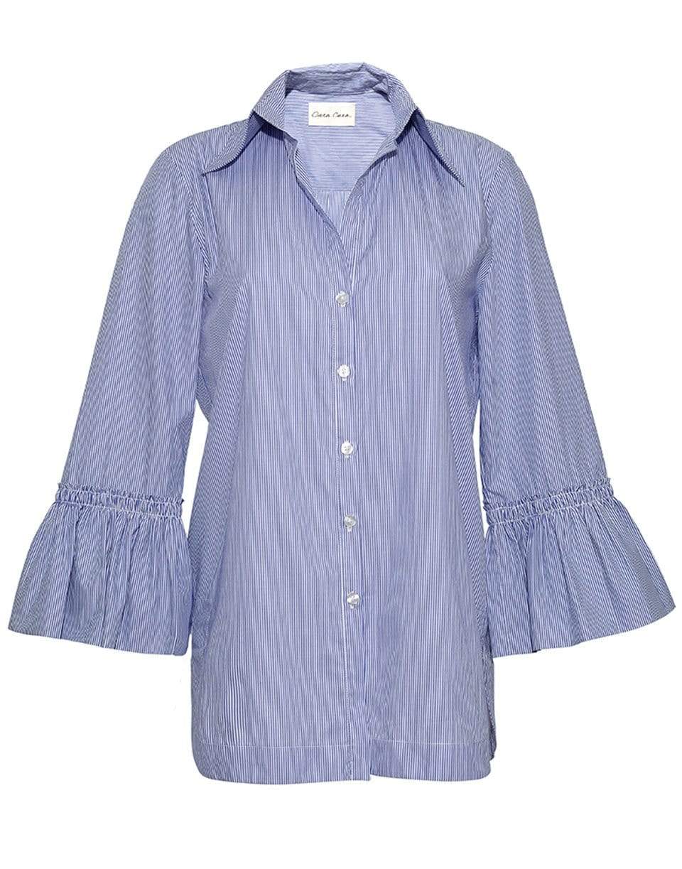 Cara Cara the olivia blouse in stripe blue. Three quarter sleeve length, tunic blouse design, with front buttons.