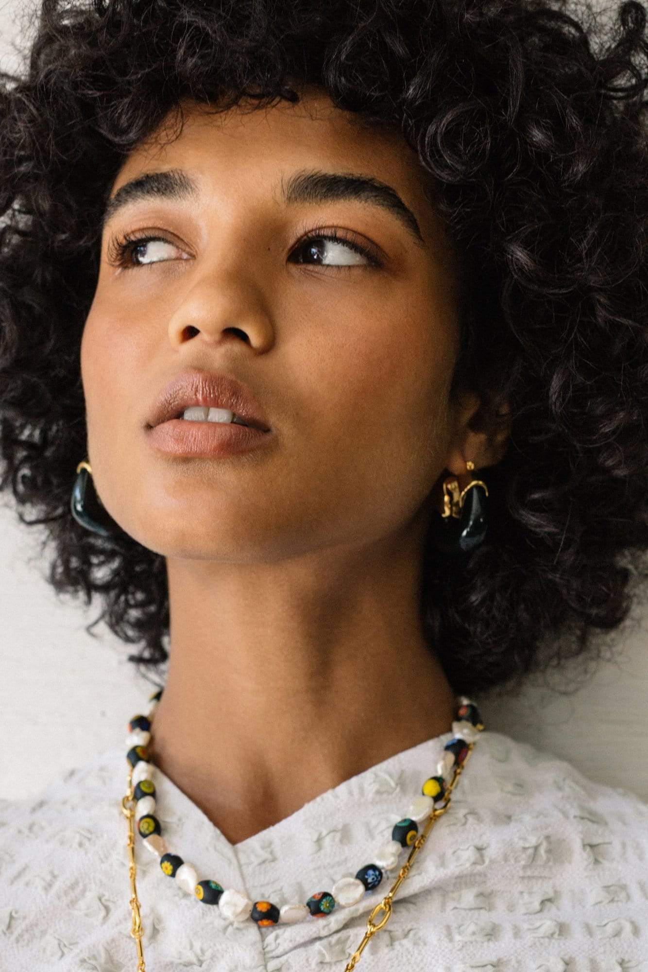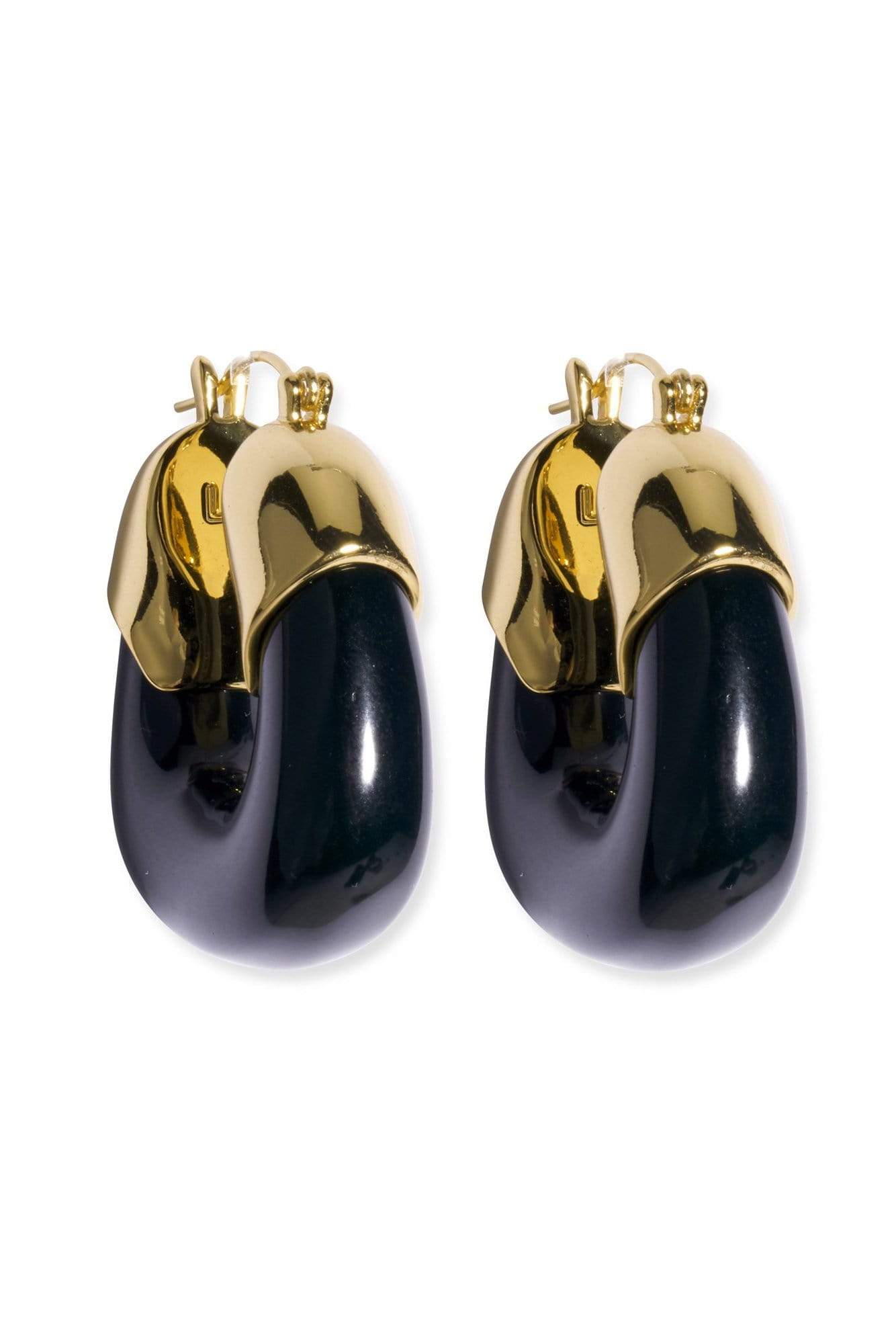 Lizzie Fortunato organic hoops in midnight. Go au naturel in this easy-to-wear pair of gold or rhodium-plated hoop earrings, available in an array of stunning shades.