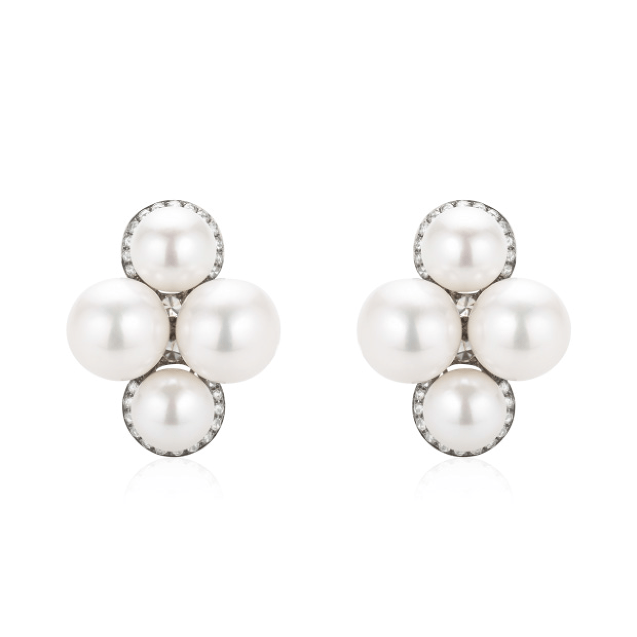 Theia White Pearl Earrings With Diamonds From Nicholas Liu