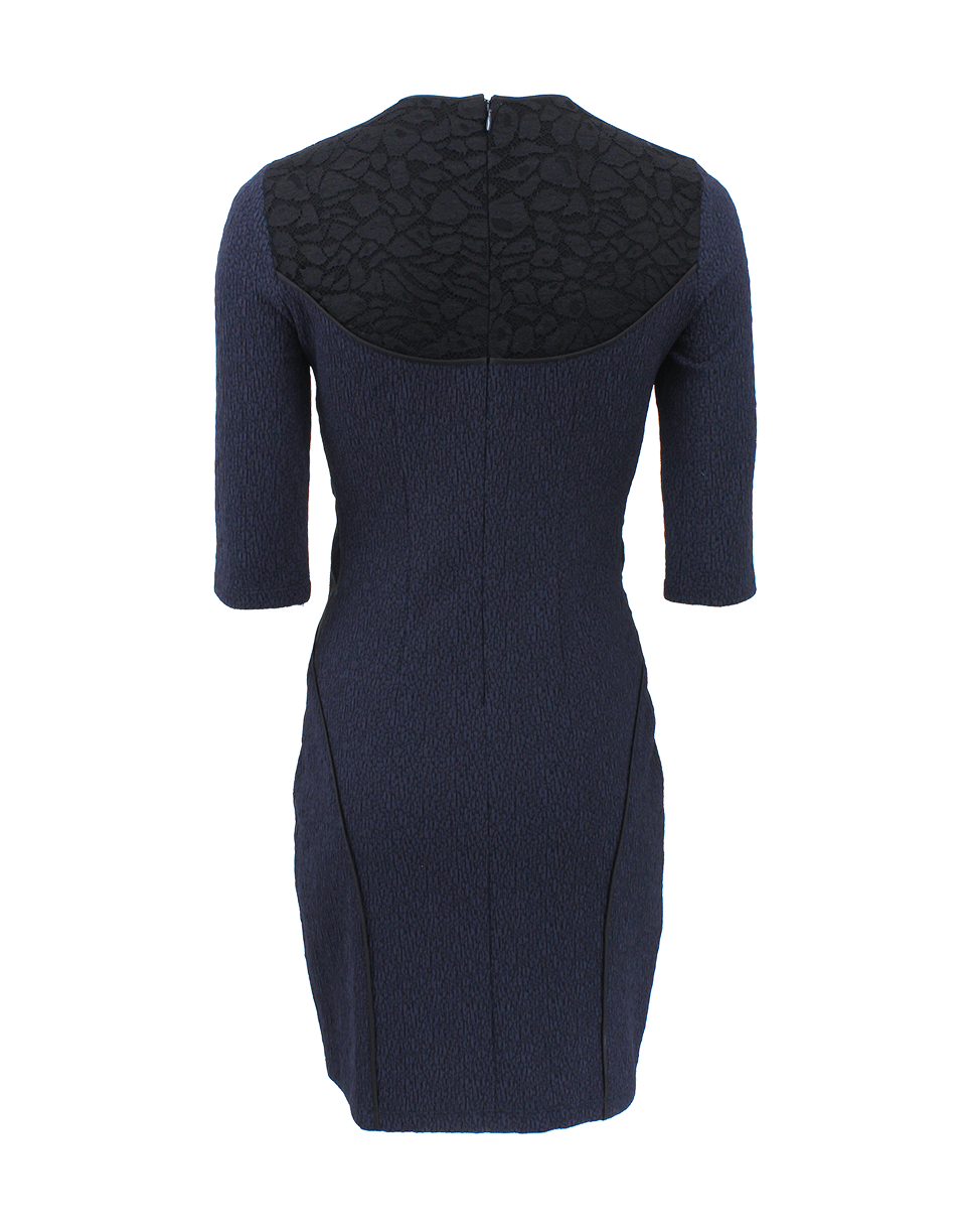 Back Zip Closure And Tri-Texture Design With Slim Silhouette And Knee-Length Cut