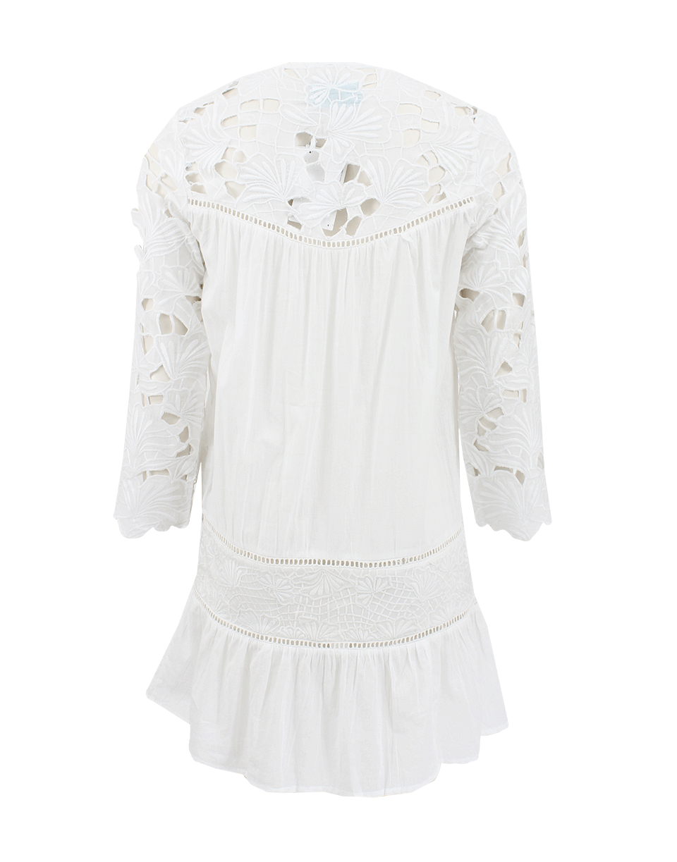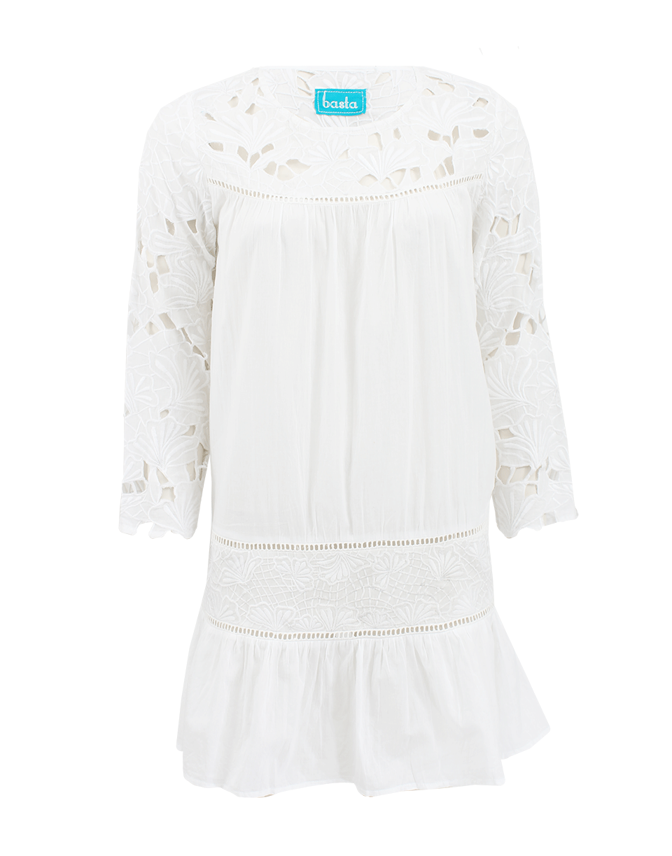 Cover-Up With Floral Cut Outs In This Three-Quarter Sleeve Embroidered Drop Waist Dress From Basta Surf