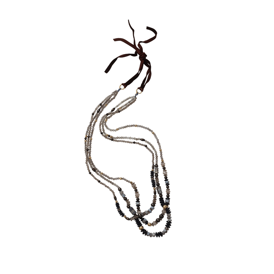 Three Strand Black Sapphire And Opal Quartz Necklace From Royal Nomad Jewelry
