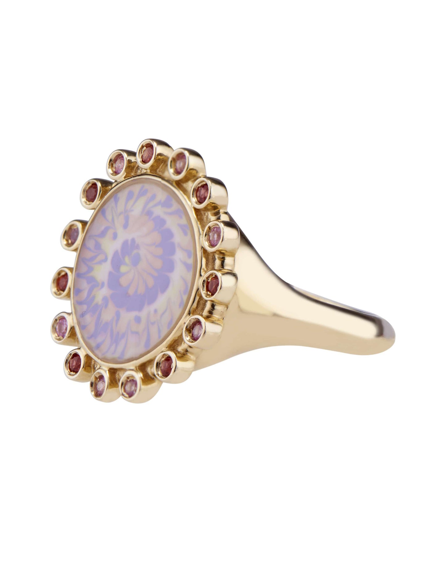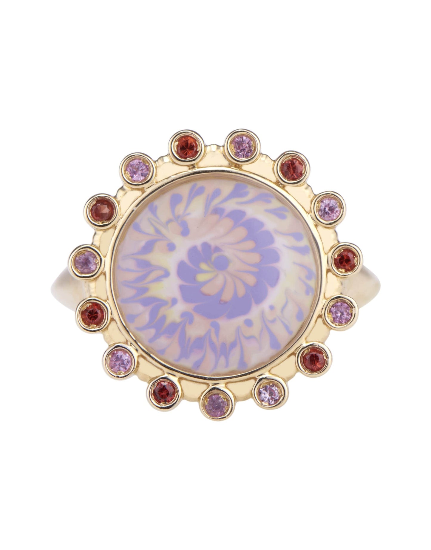 Marlo Laz tie dye lavender ring with pink and orange sapphires.