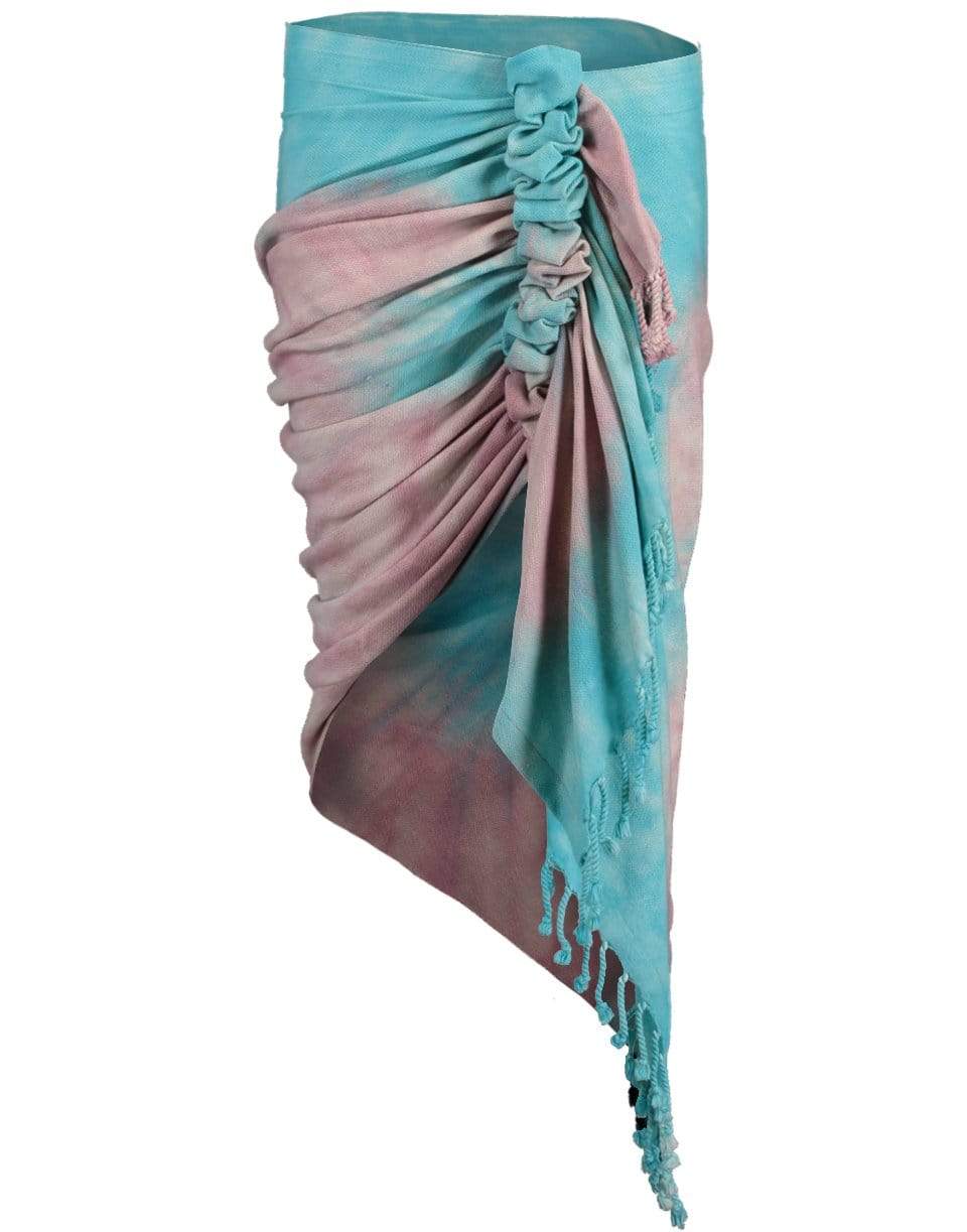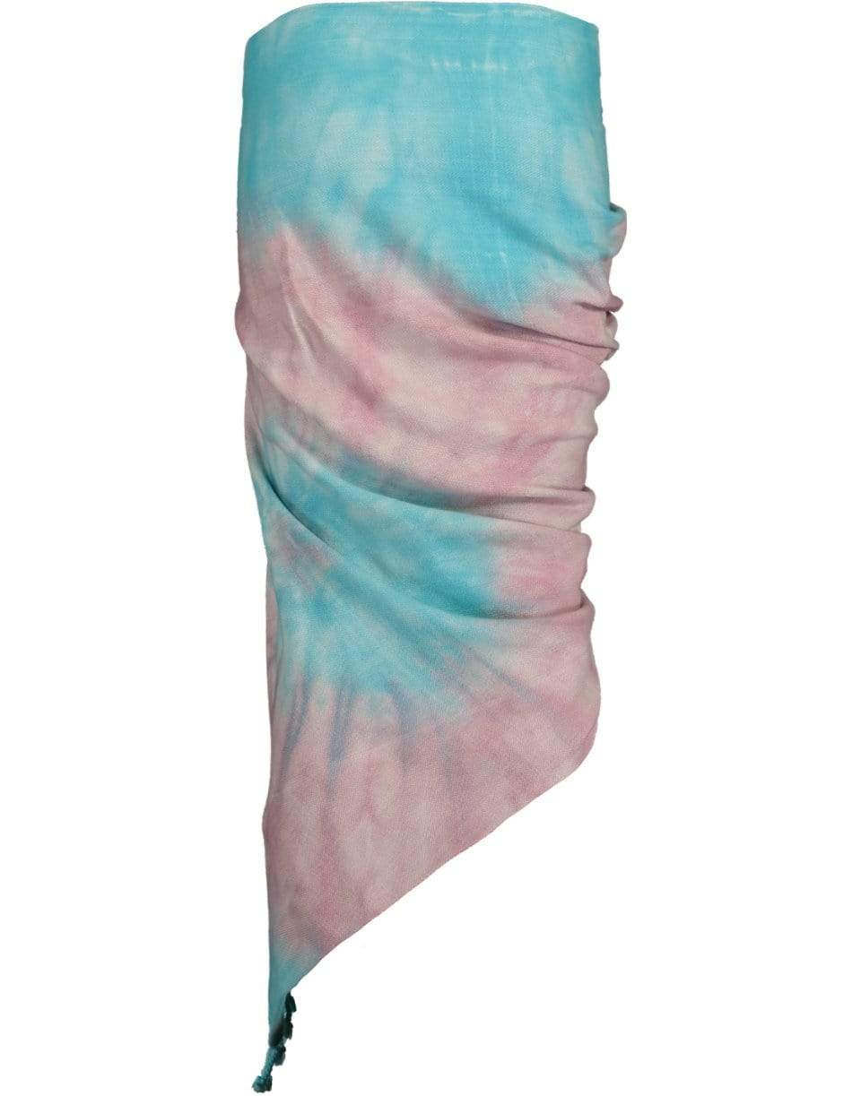 Tie dye ombre print gathered sarong skirt from Just Bee Queen featuring an asymmetrical hem with fringe, zip fastening, and a mid-length.
