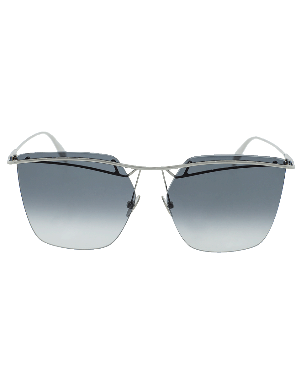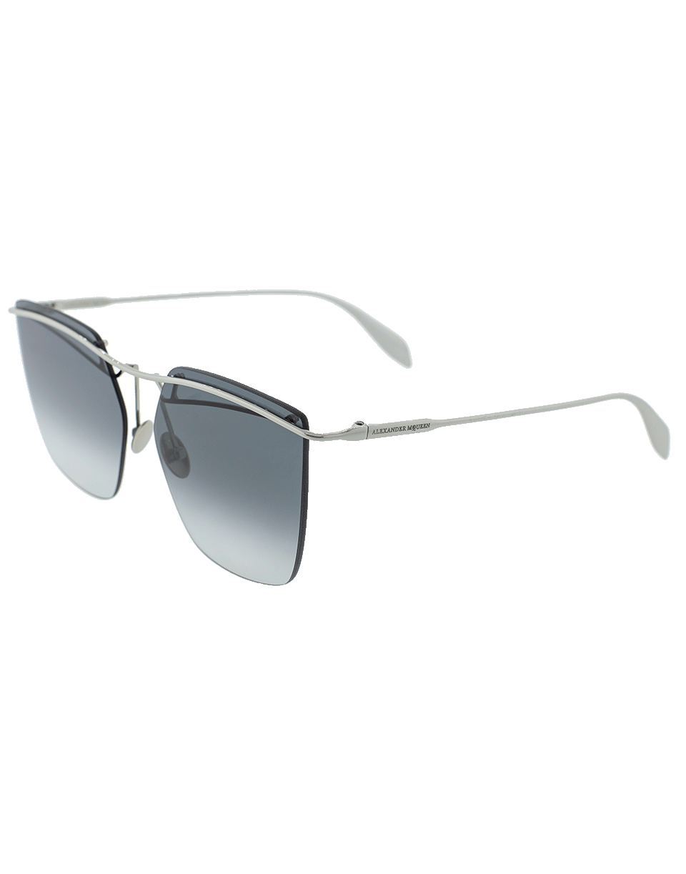 These stylish sunglasses by Alexander McQueen feature a rectangular silhouette with a semi-rimless frame, silvertone metal bar, grey gradient lenses and finished with the signature logo.
