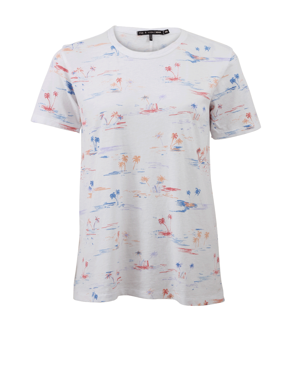Scoop Neckline With All-Over Beach Print And Loose-Fitting Silhouette
