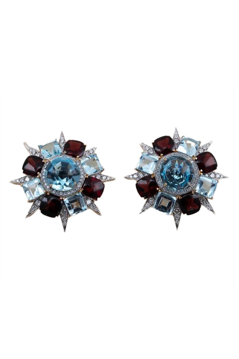 Blue Topaz (App. 57.43Ct.), Garnet (App.27.87Ct), Diamond (App. 3.46Ct)