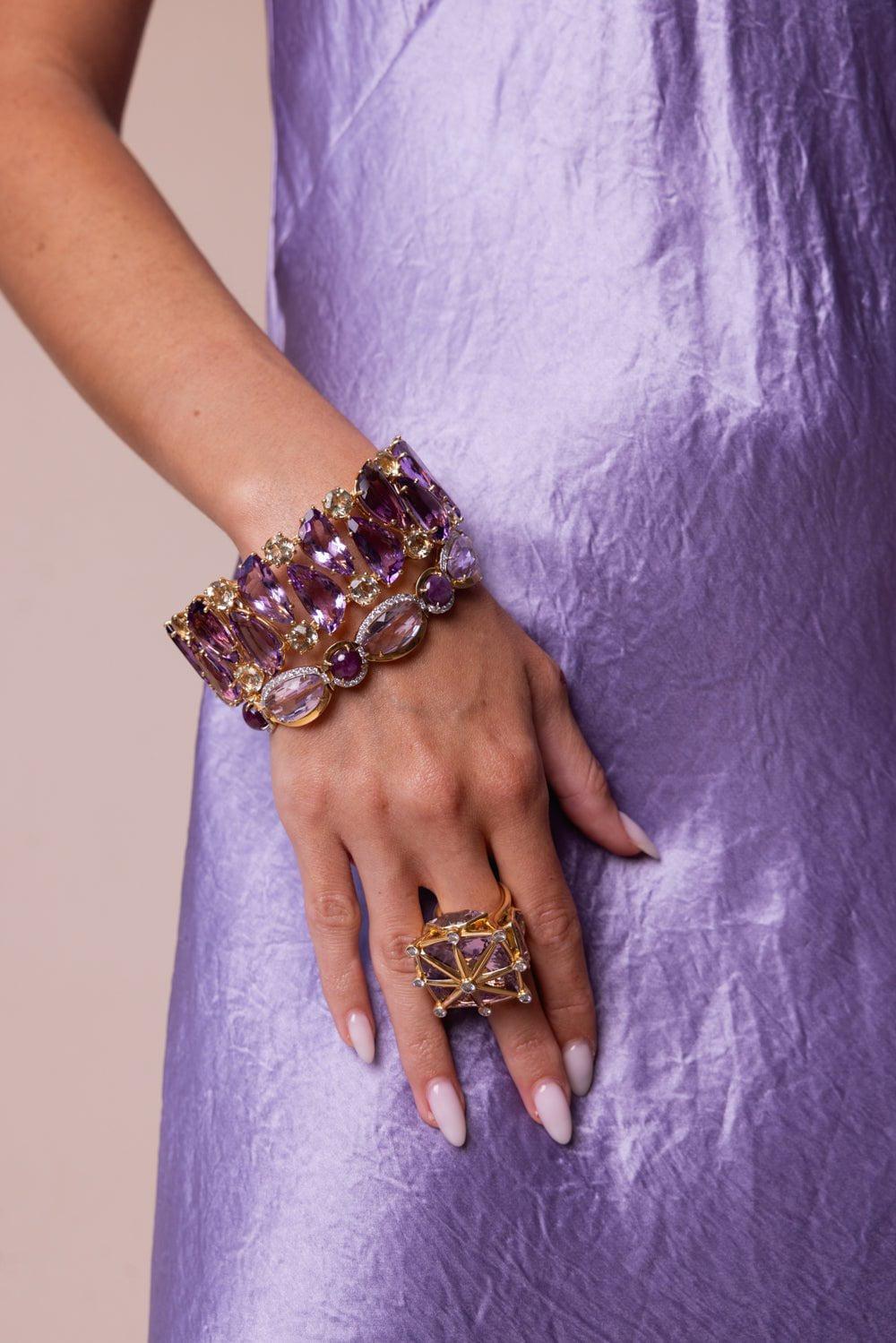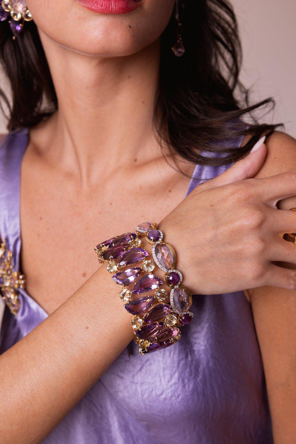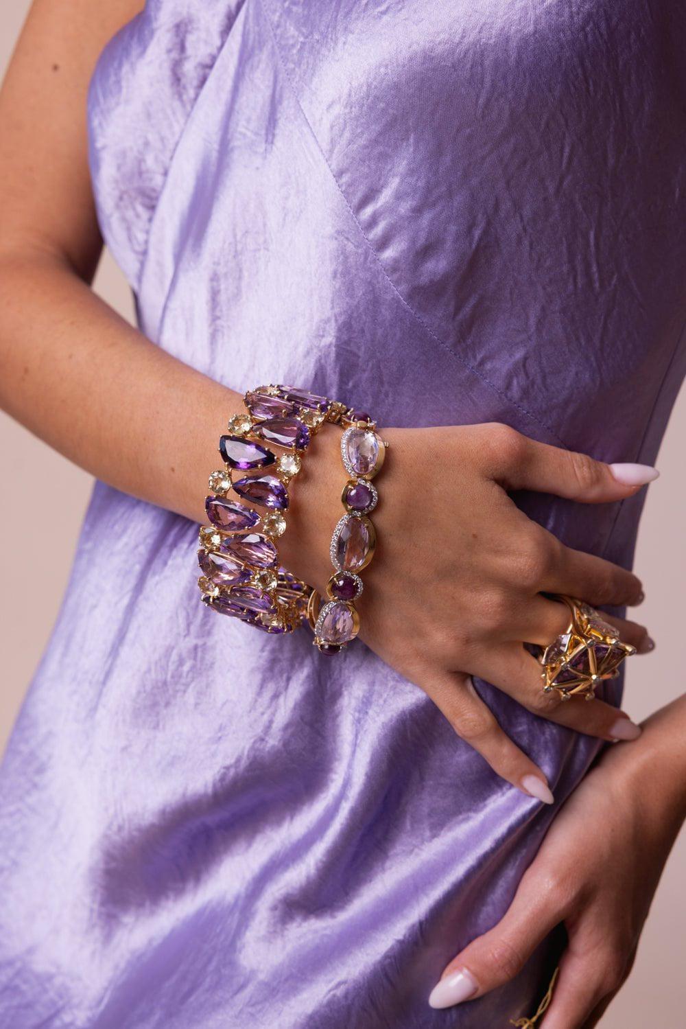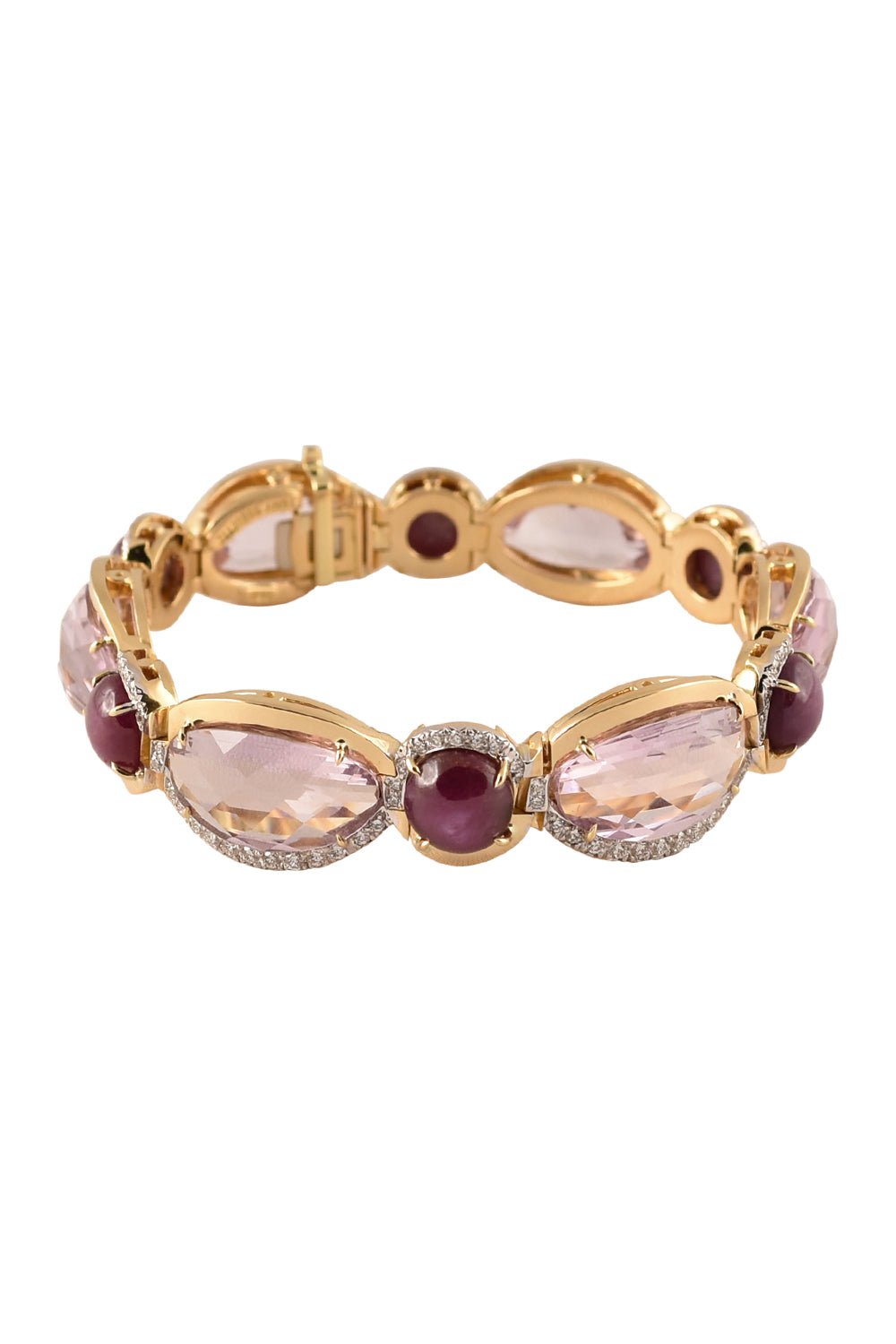 Tony Duquette pink amethyst diamond bracelet in yellow gold.