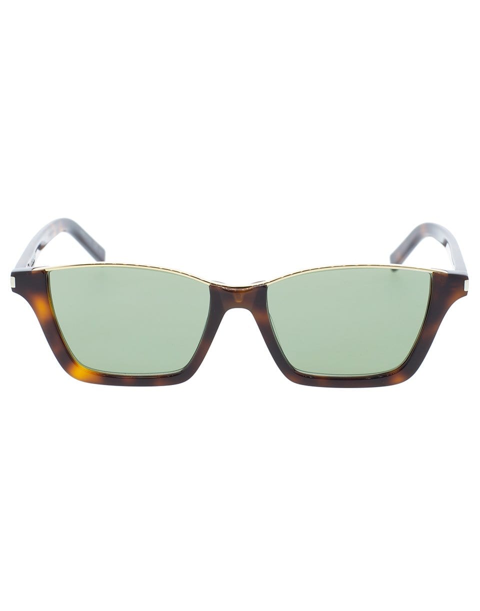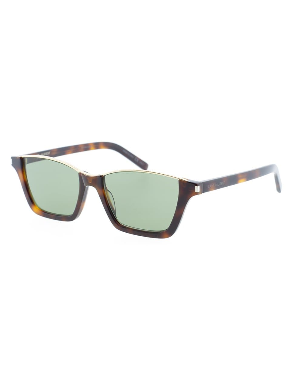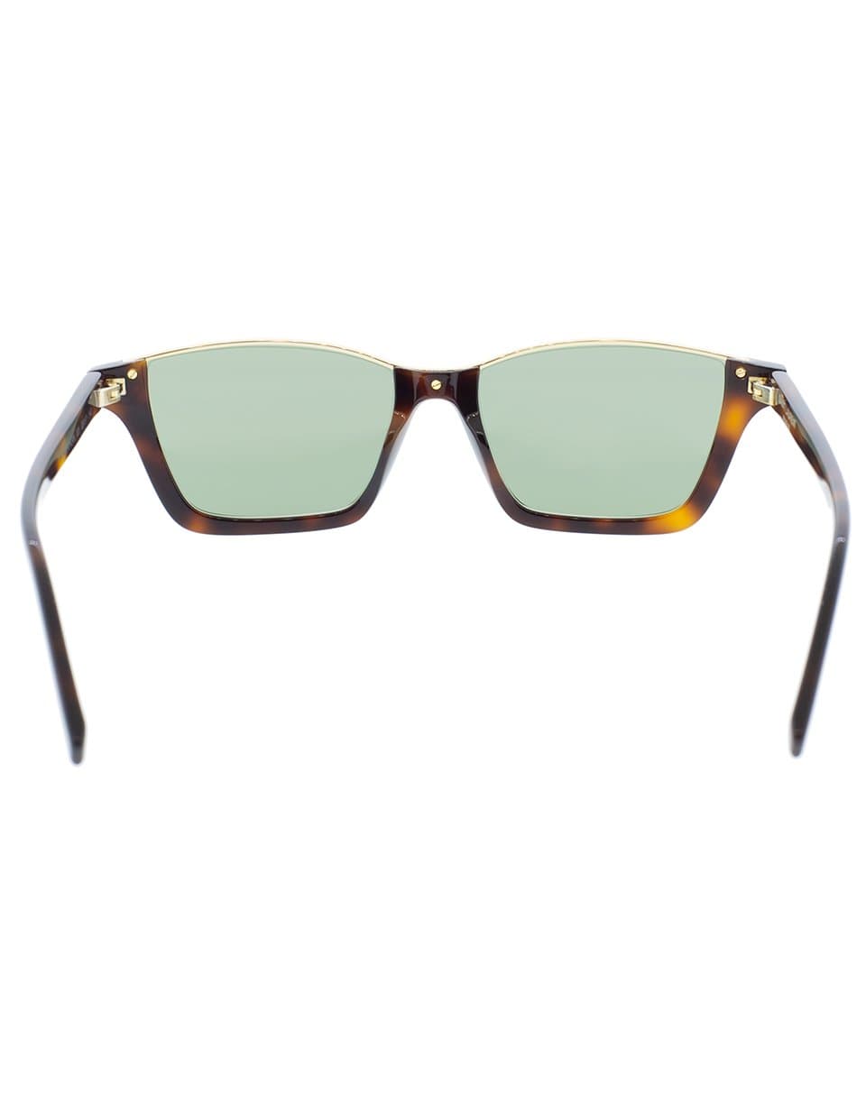 Saint Laurent tortoise Dylan havana acetate sunglasses with green lenses.