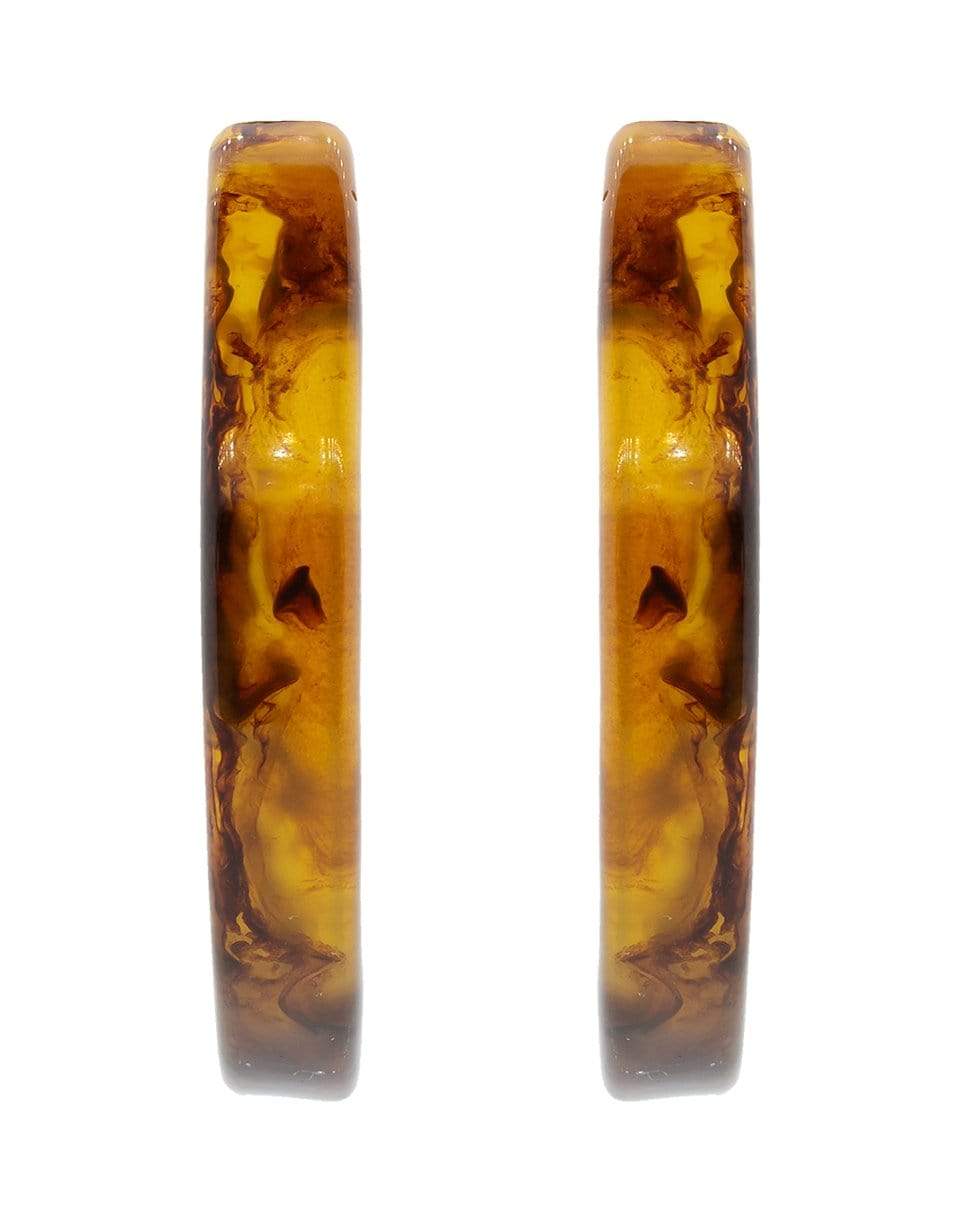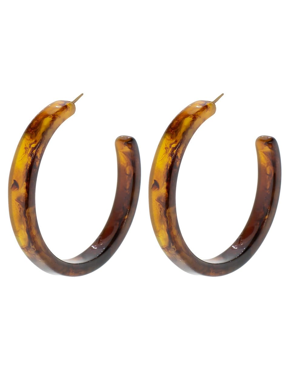 Chunky tortoiseshell resin hoops with post backs from NAHMU. For pierced ears.
