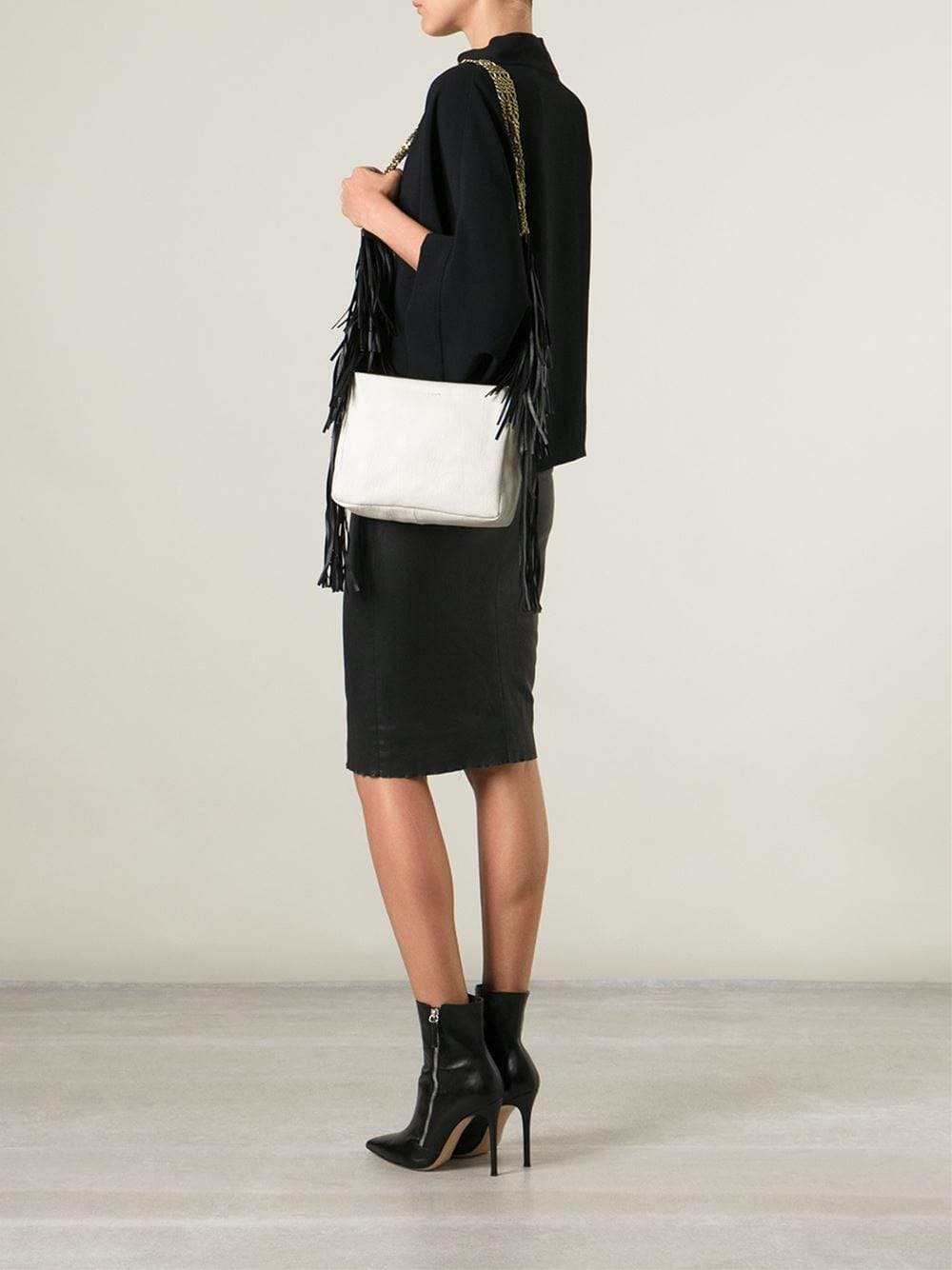 10" x 7" x 3", 36" Shoulder Strap With Four Chains And Fringe Detail