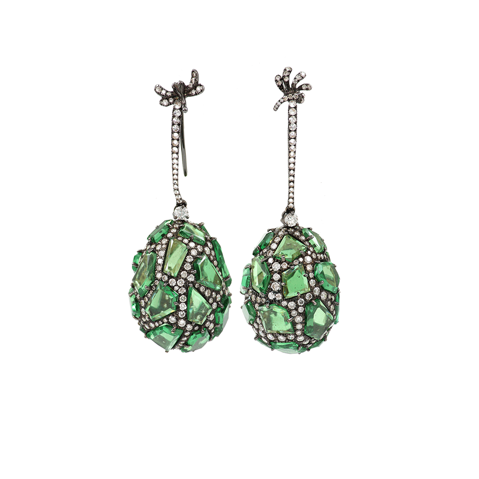 Tsavorite Egg Drop Earrings With Diamonds From Arunashi