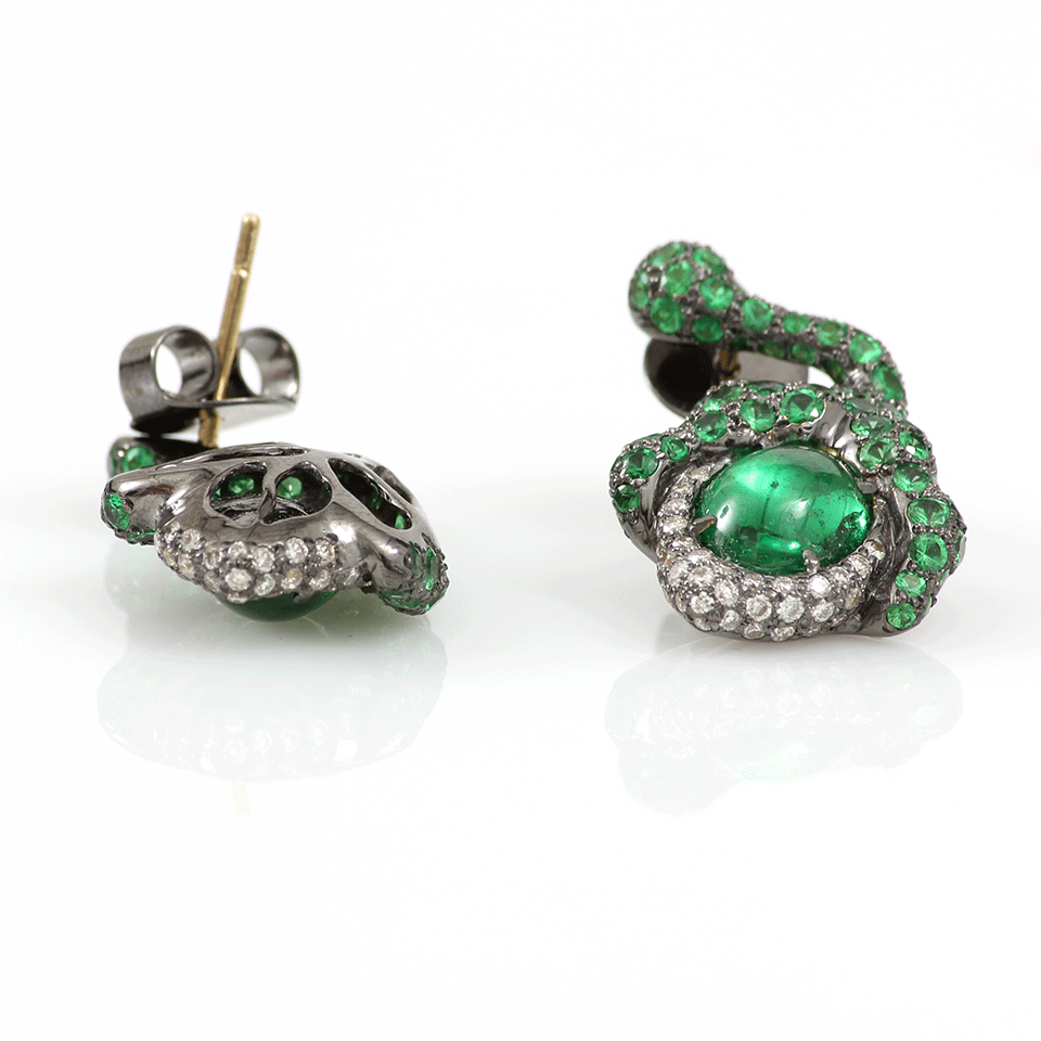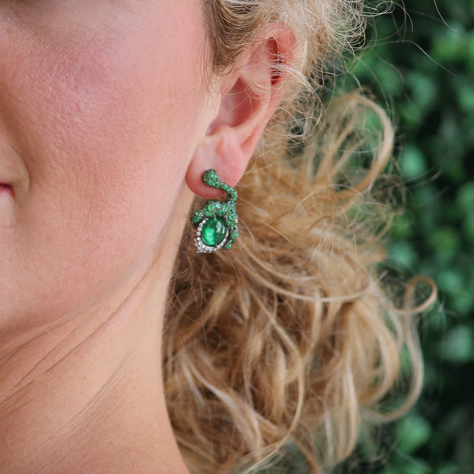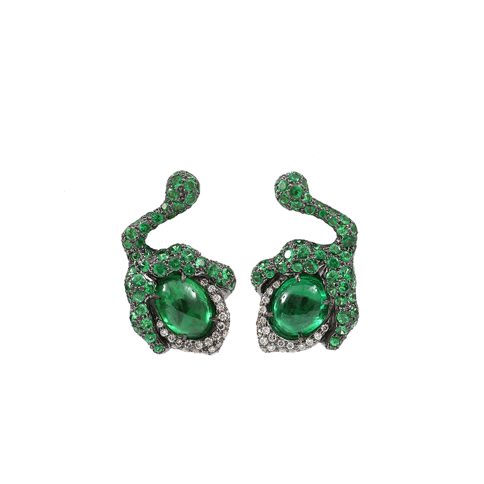Tsavorite Flower Bud Earrings With Diamonds From Arunashi