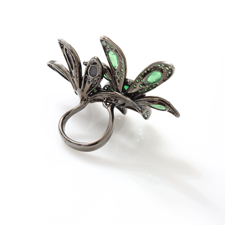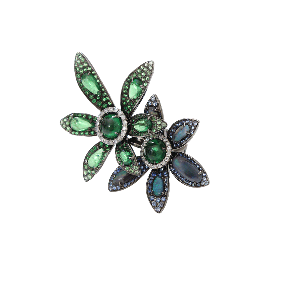 Tsavorite Flower Ring With Opal, Blue Sapphire, And Diamonds From Wendy Yue