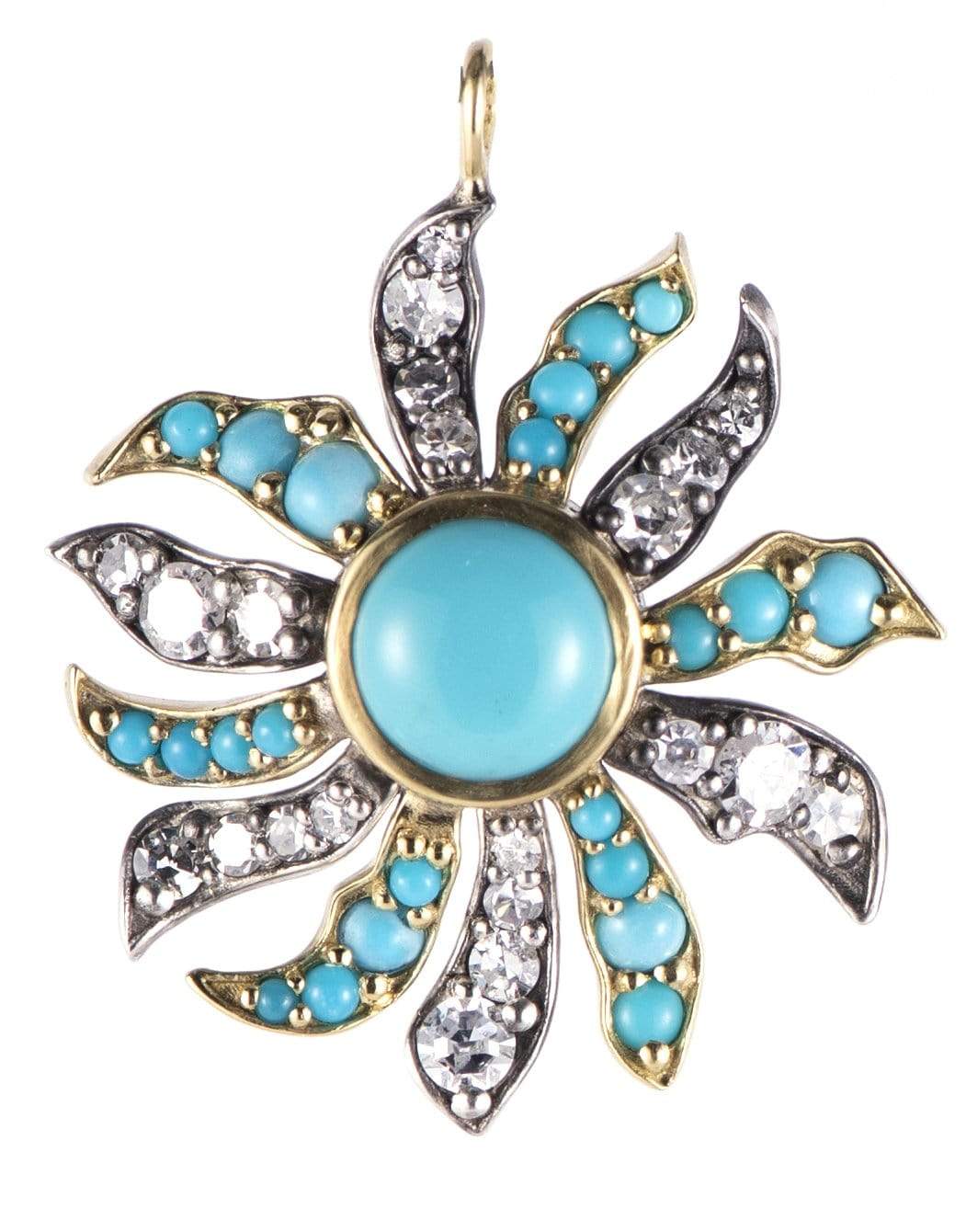 Turquoise and diamond flora pendant.