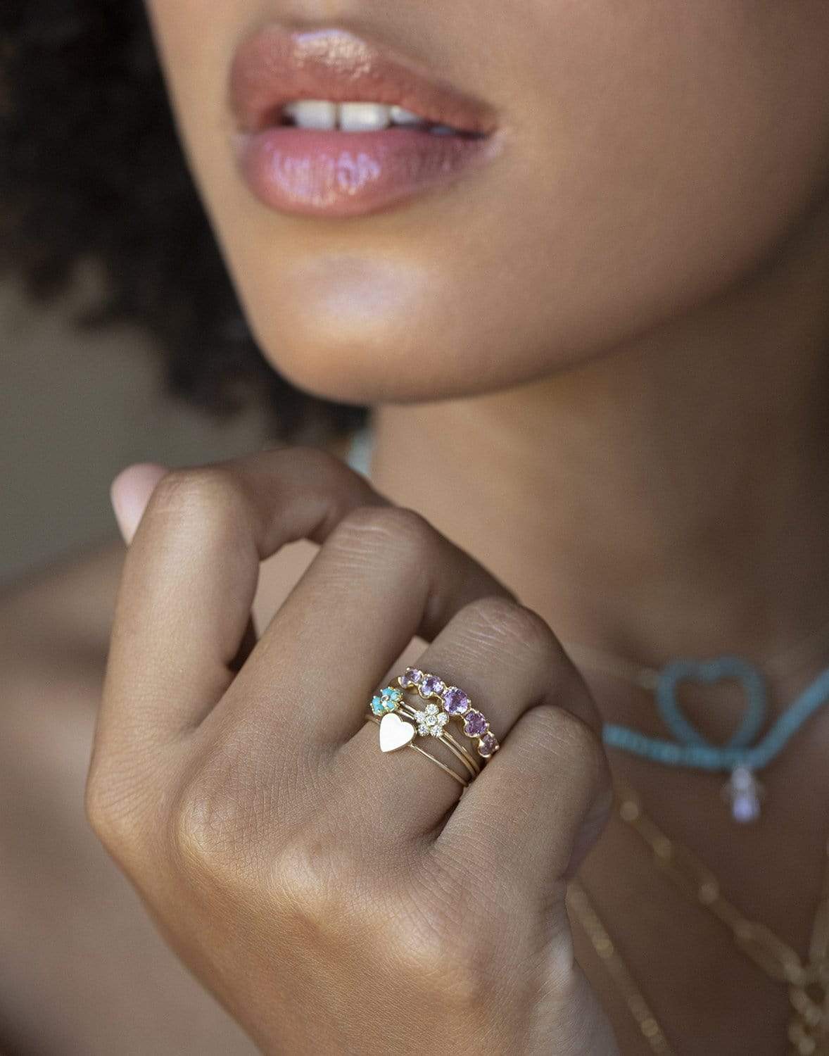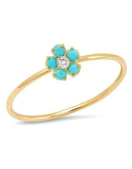 Jennifer Meyer Turquoise and Diamond mini flower ring.