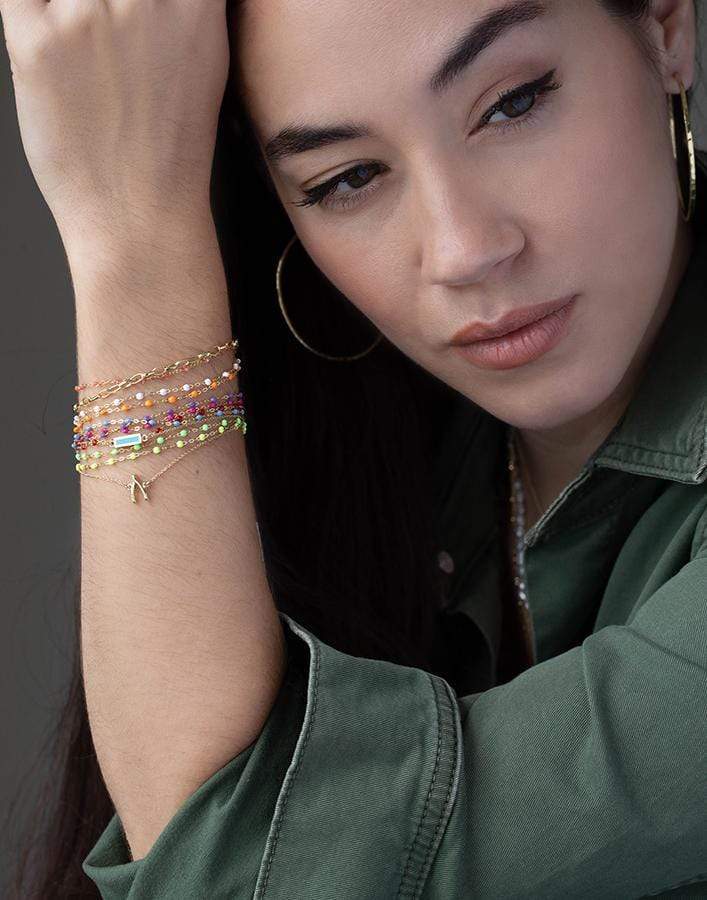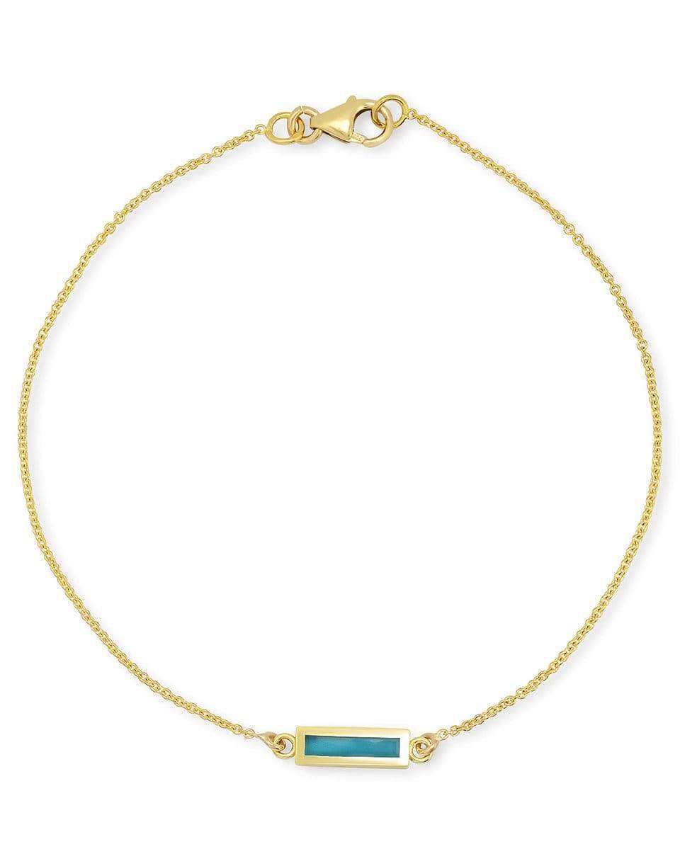 Jennifer Meyer turquoise inlay bar bracelet set in yellow gold.