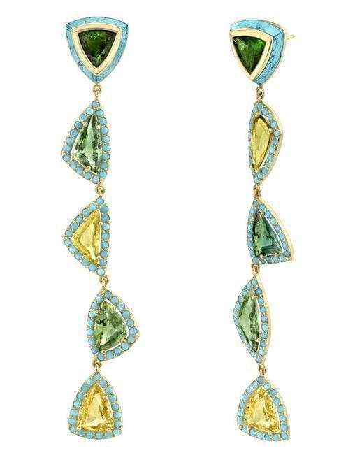 Emily Wheeler one-of-a-kind Moss earrings with yellow and green sapphires,turquoise, and green tourmaline.