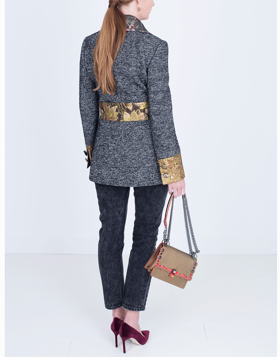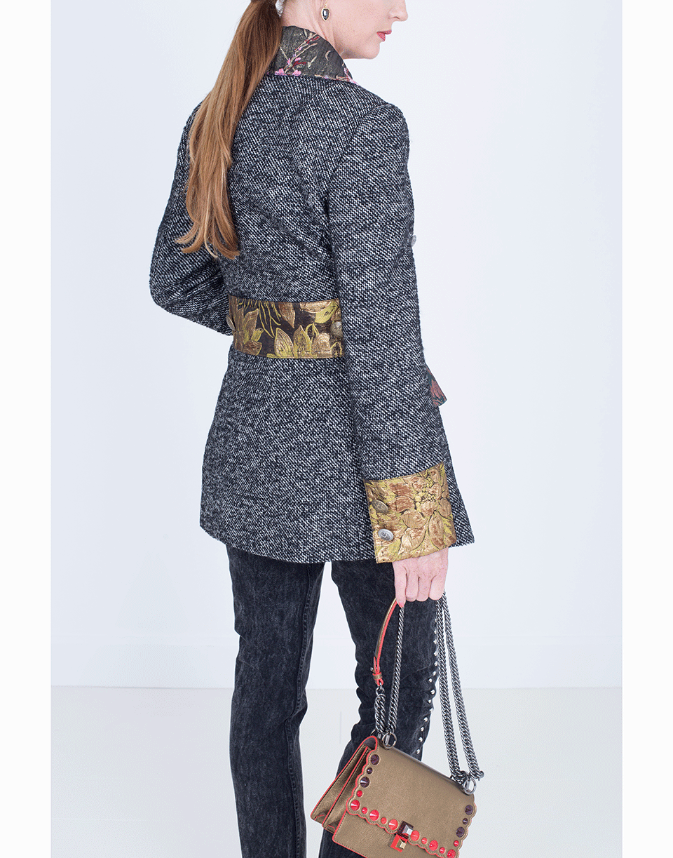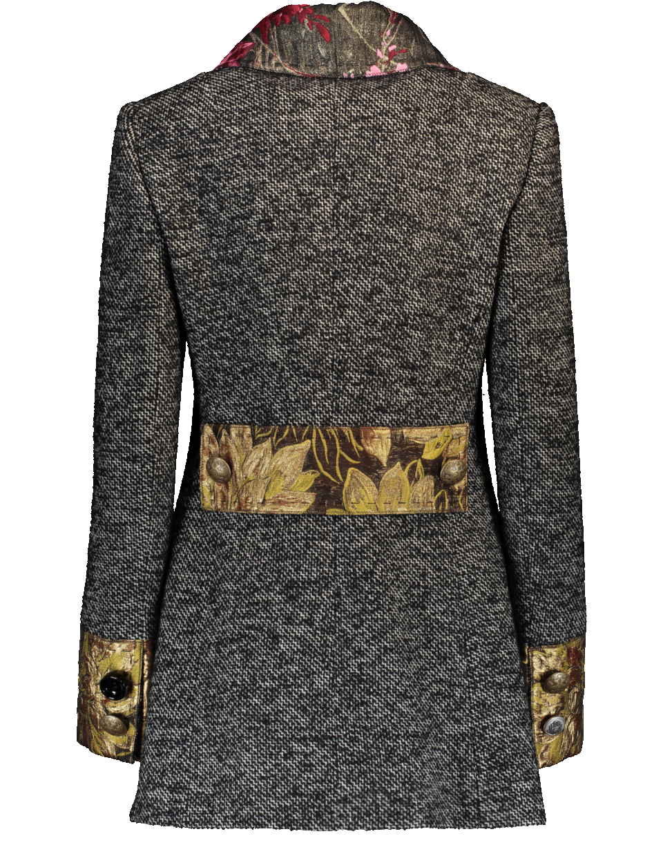 Brocade Trim With Loose Fitting Silhouette And Thigh Length Cut