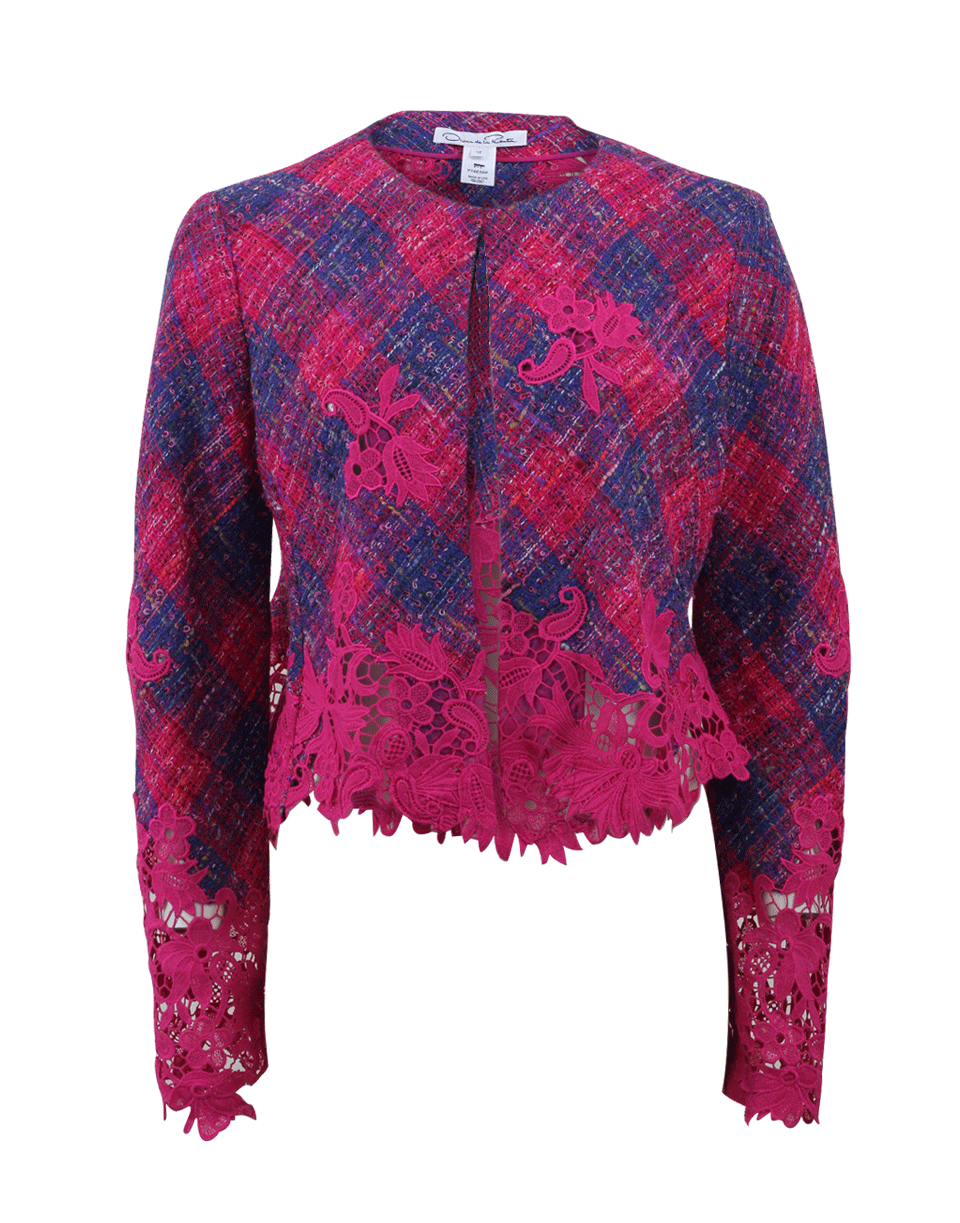 One Hook And Eye Front Closure With Scoop Neckline And All-Over Textured Tweed