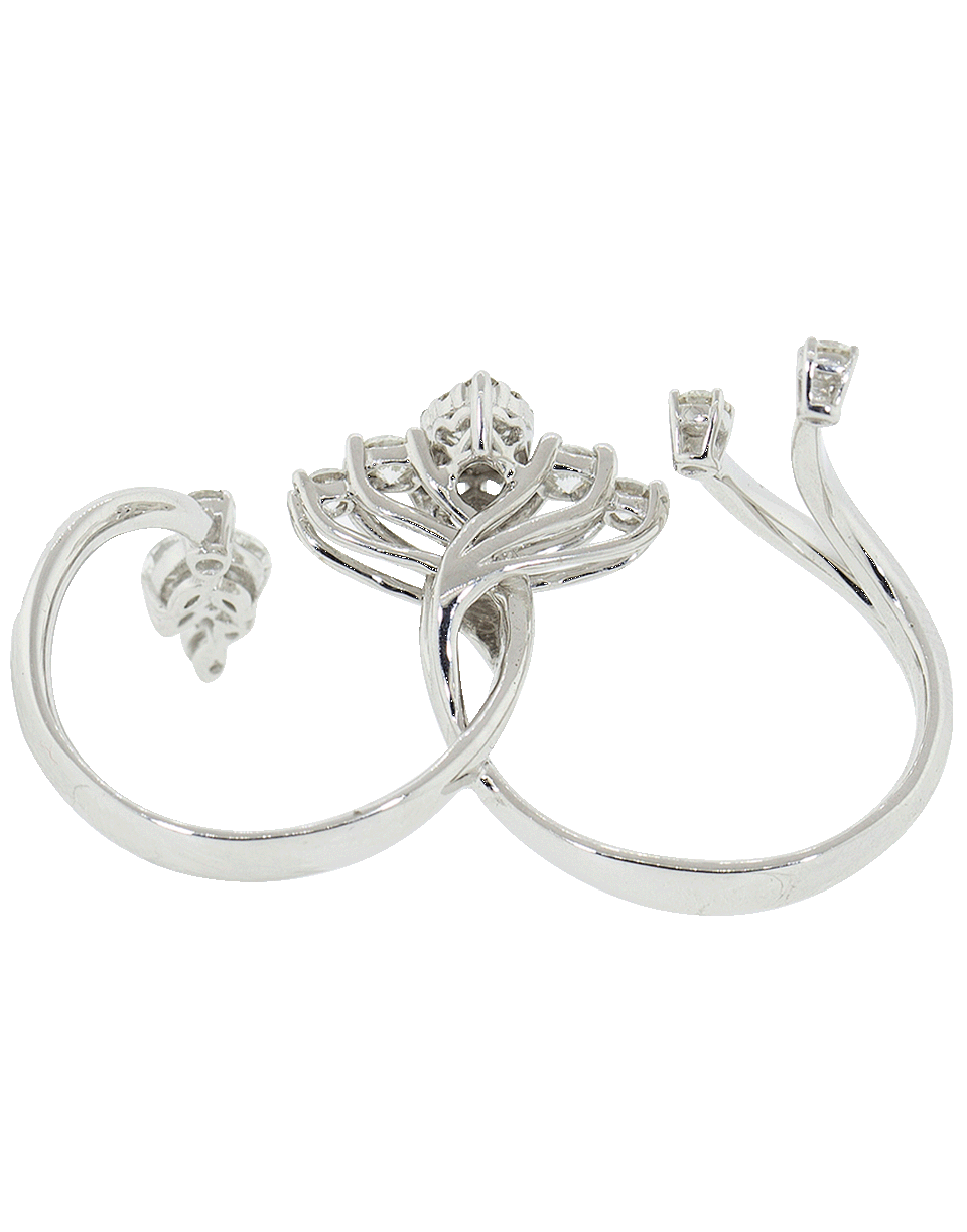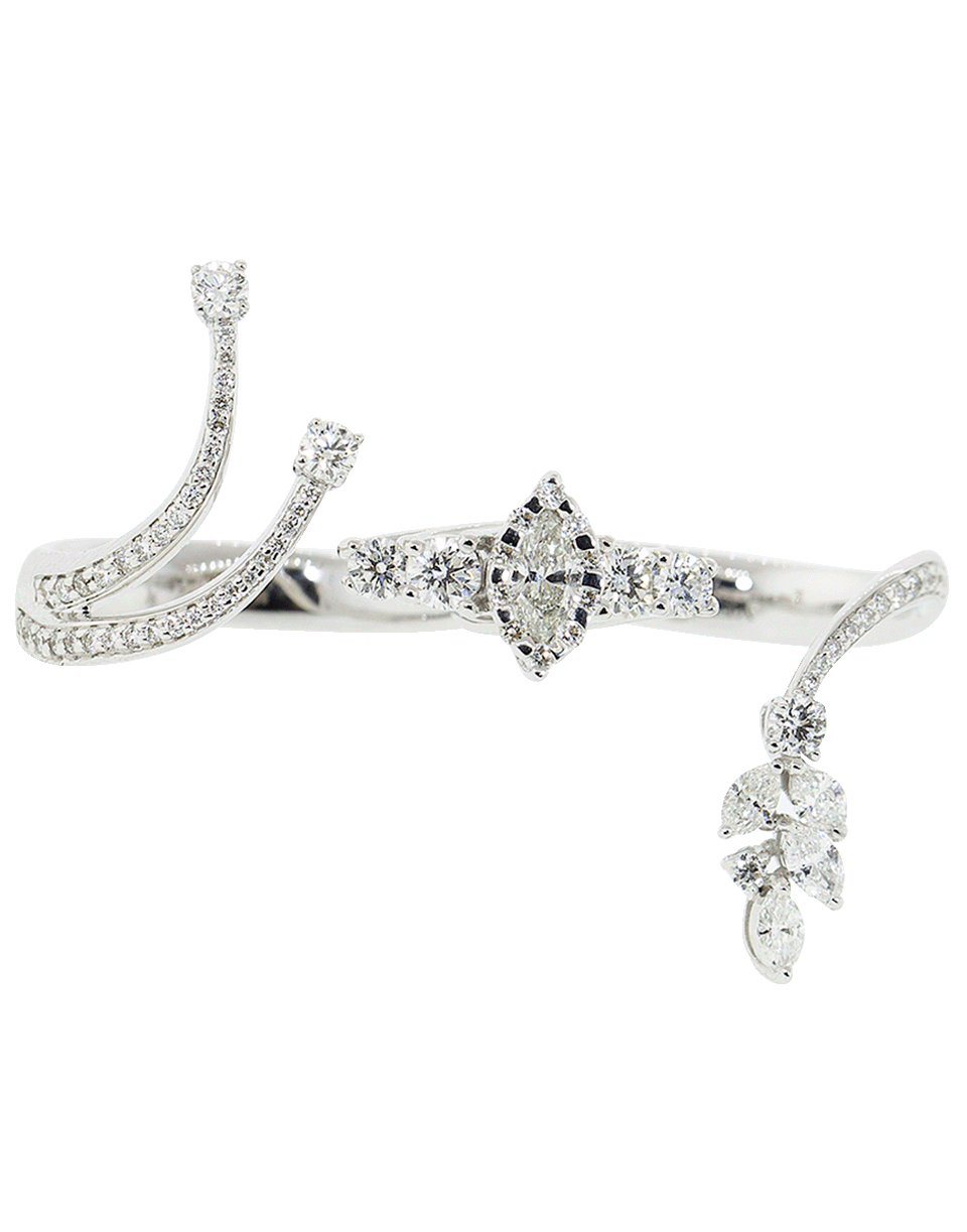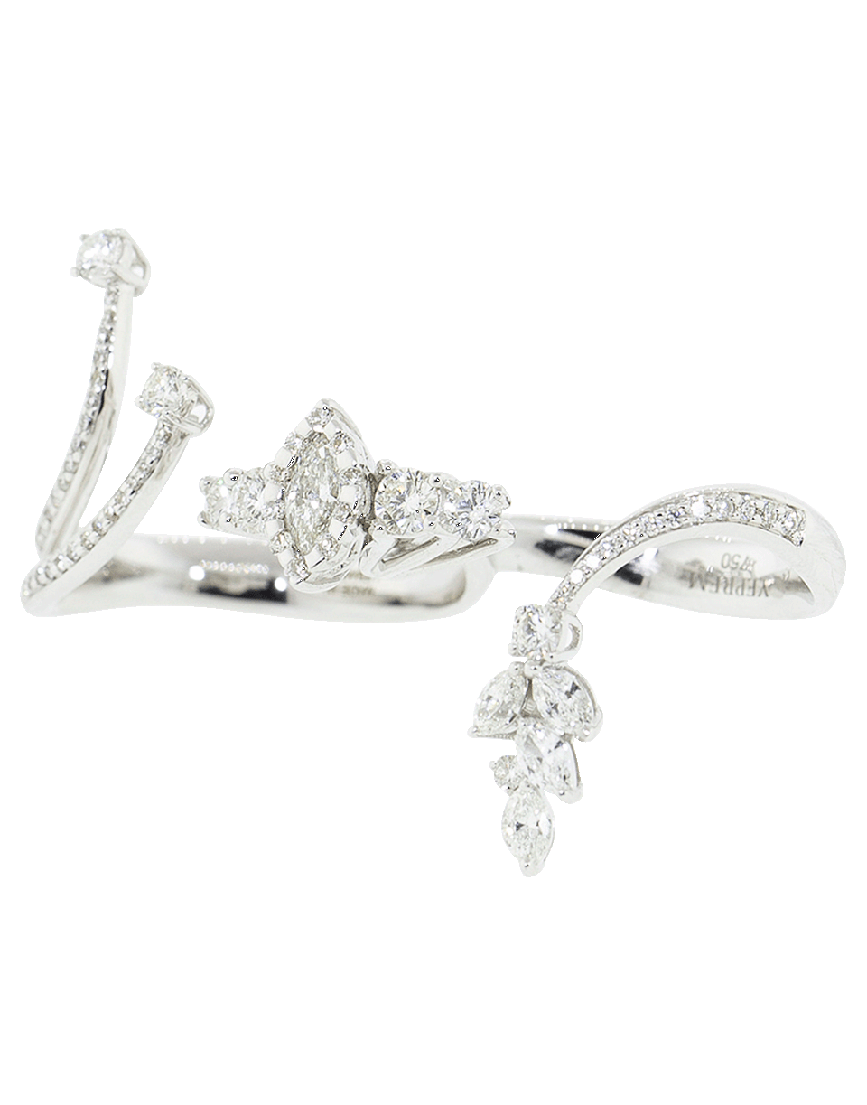 Yeprem's two finger ring is designed with round and marquis diamonds set in 18k white gold.