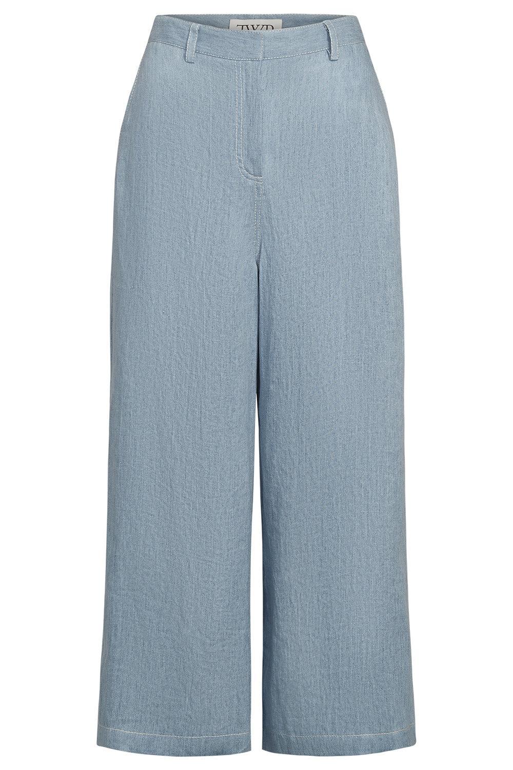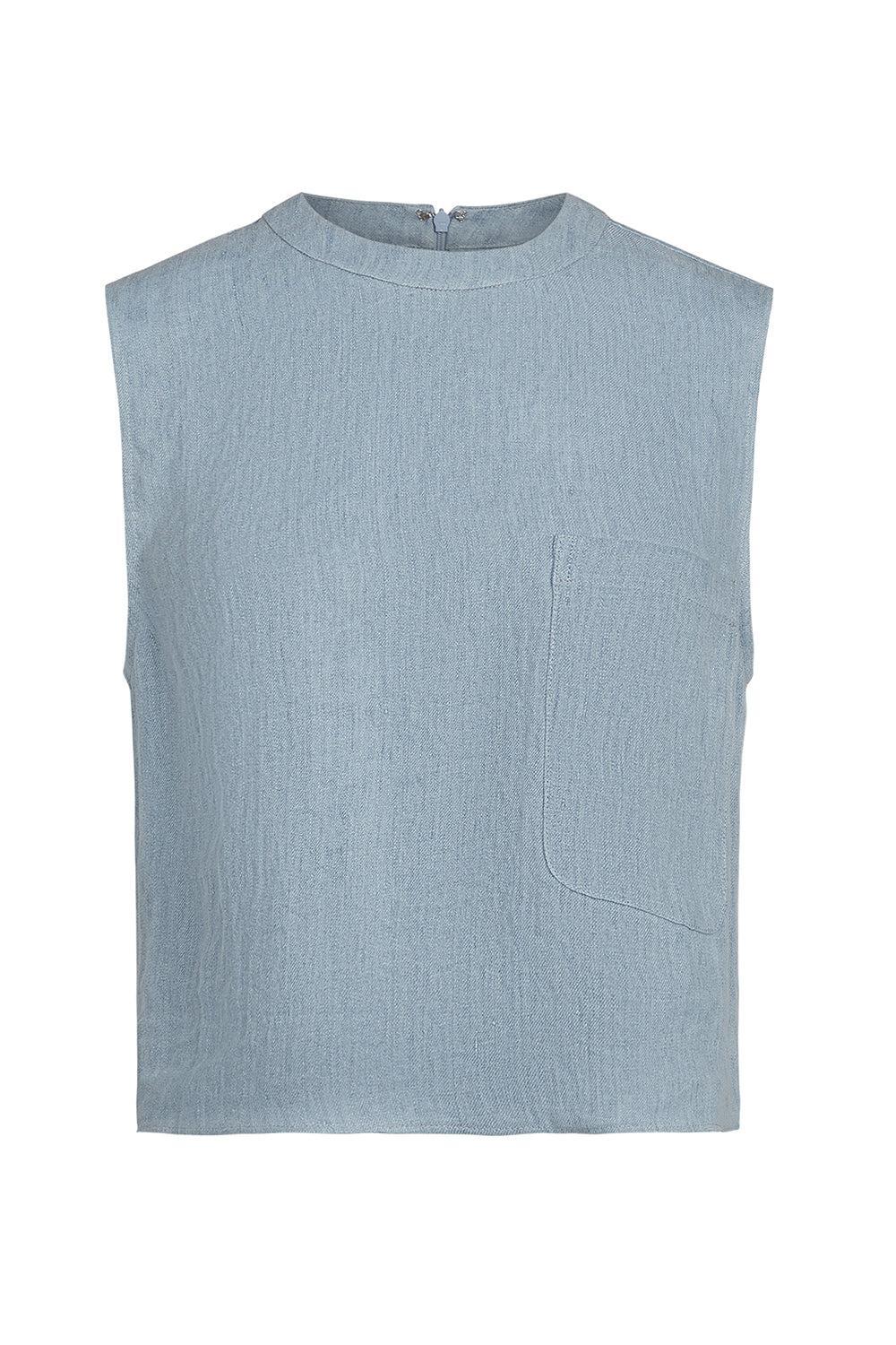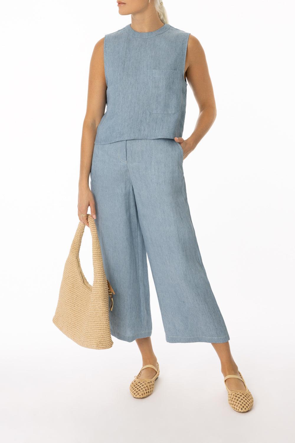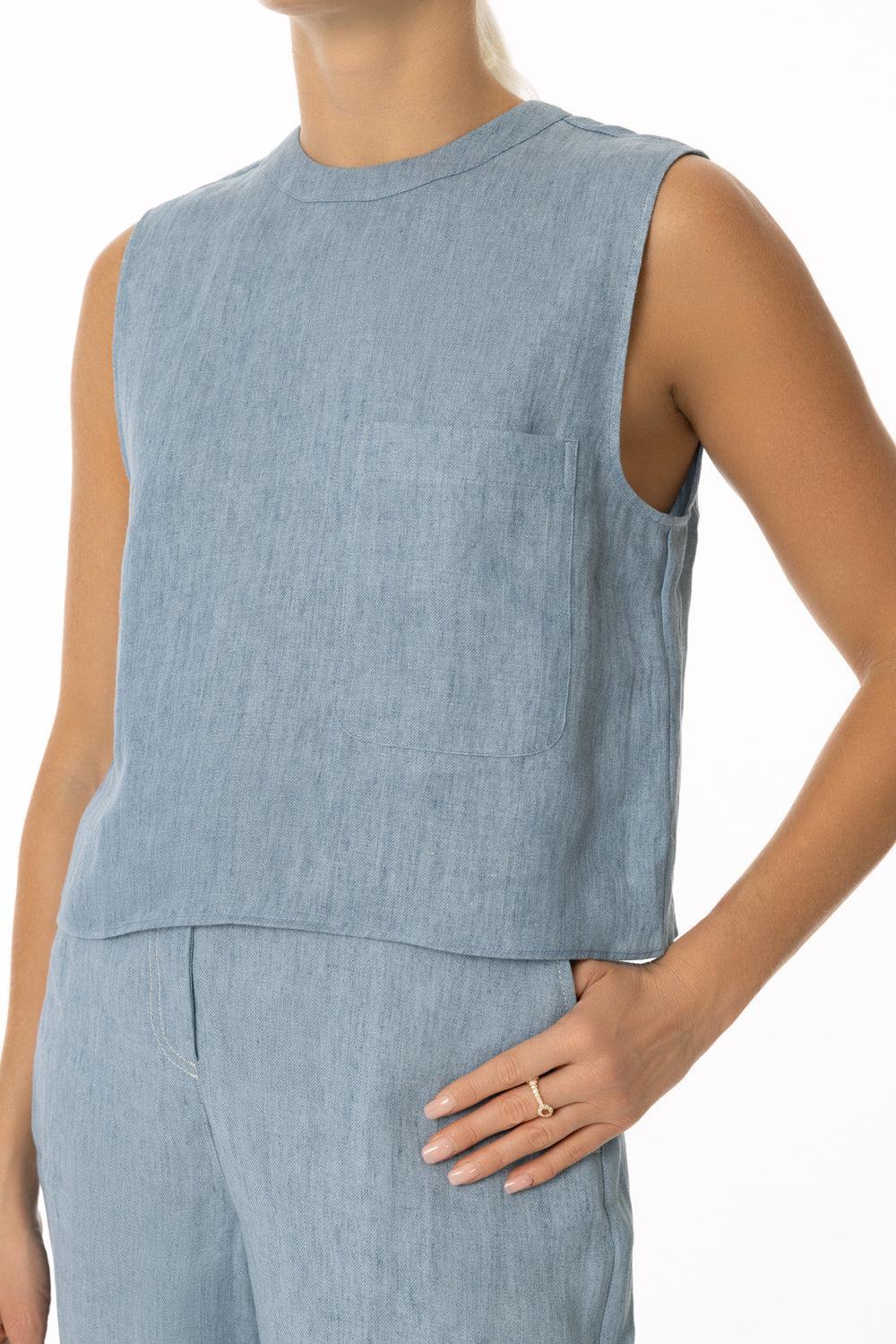 TWP cropped muscle tank in light indigo.