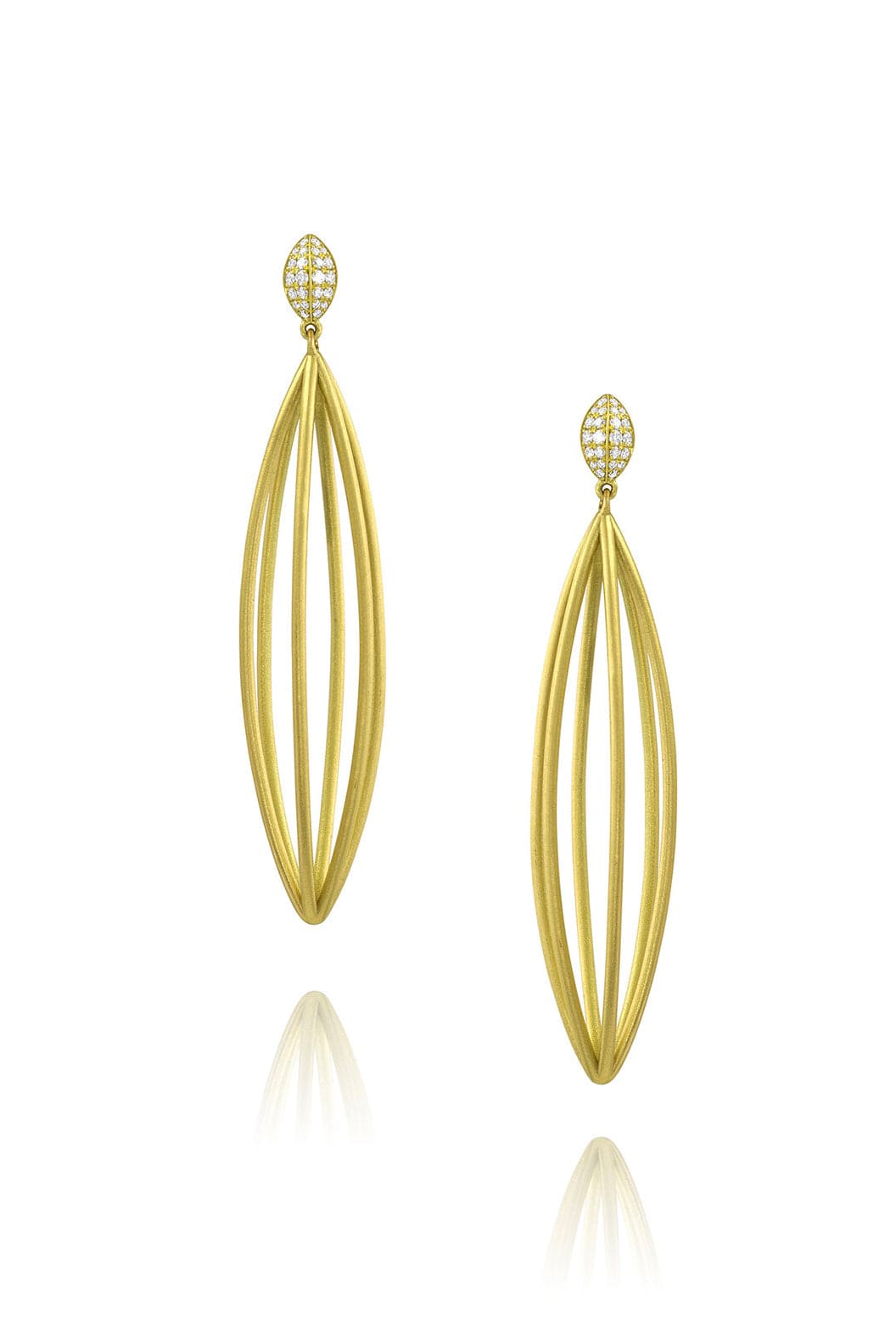 Leigh Maxwell pave diamond Ulaini long marquis earrings with satin finish.