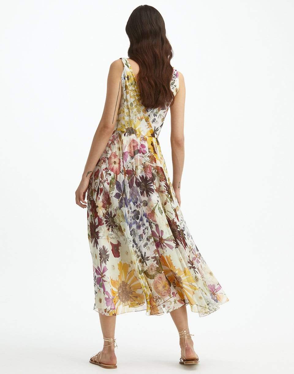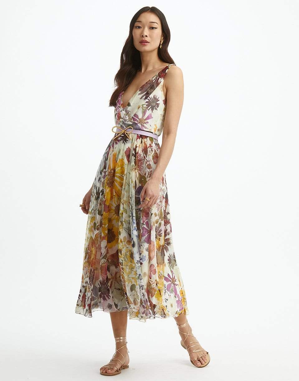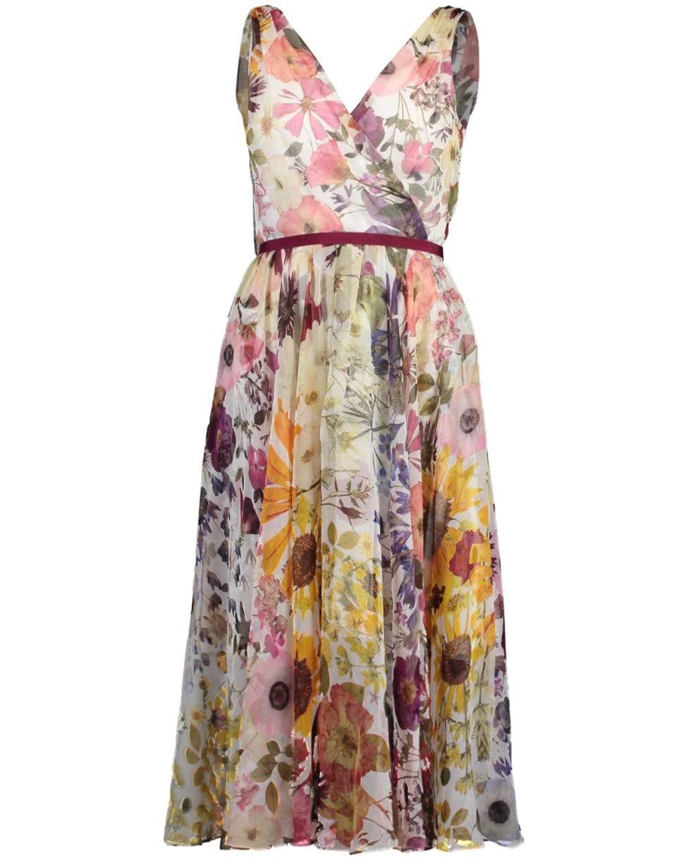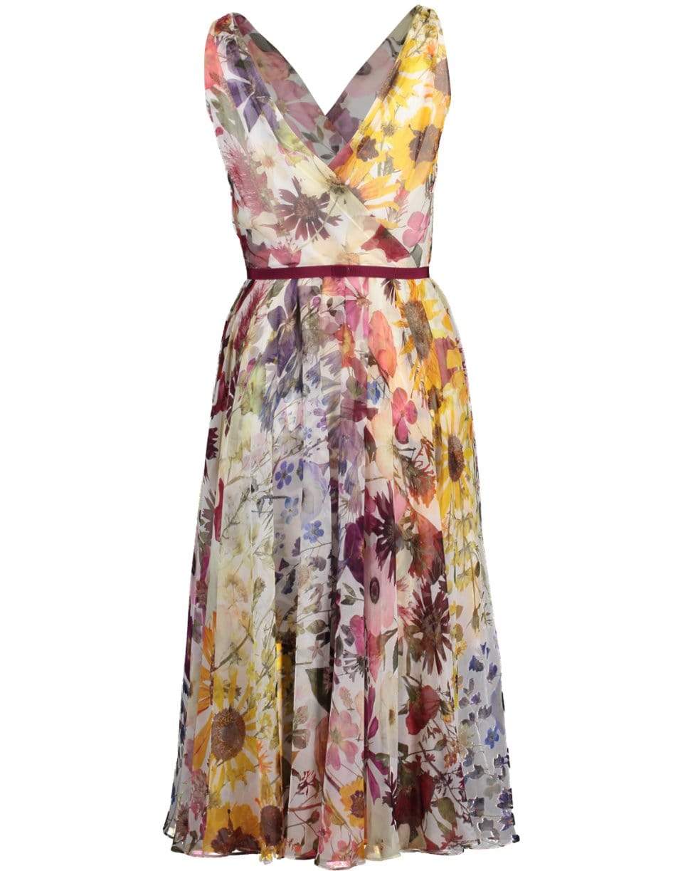 Oscar De La Renta A-line dress with the season's signature pressed flower motif on delicate silk-chiffon, this dress will make you the picture of effortless elegance.