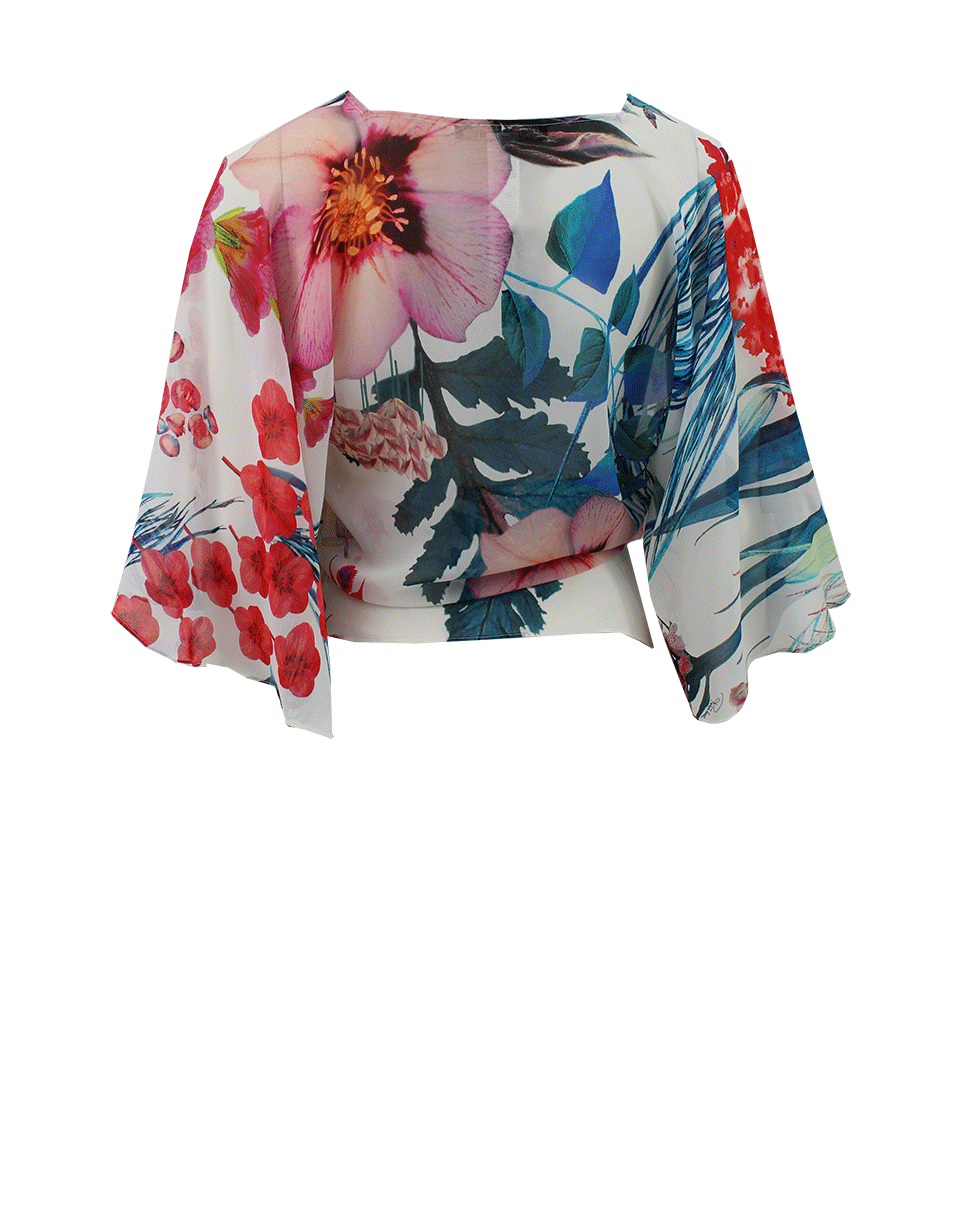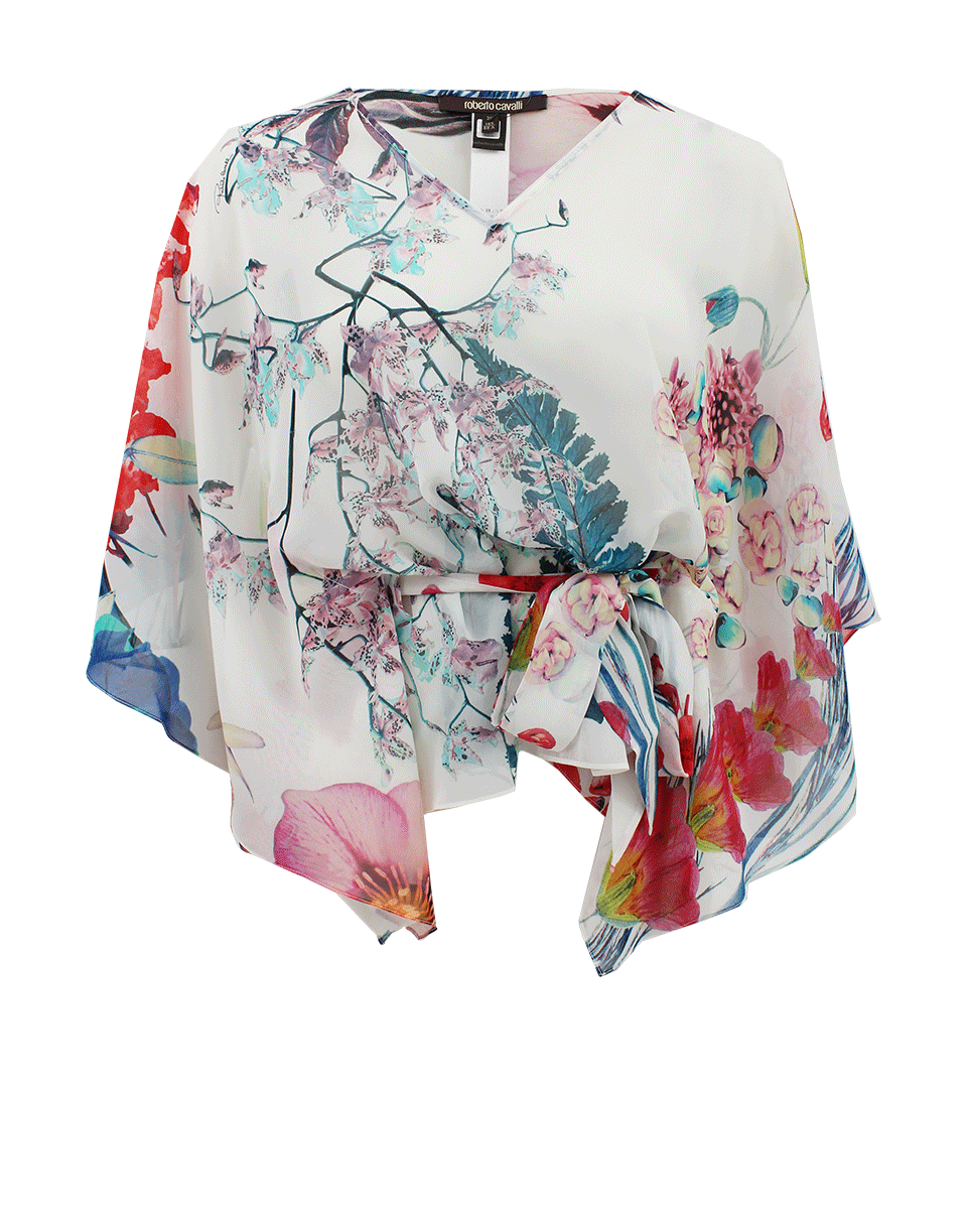 V-Neck Floral Belted Caftan Top From Roberto Cavalli