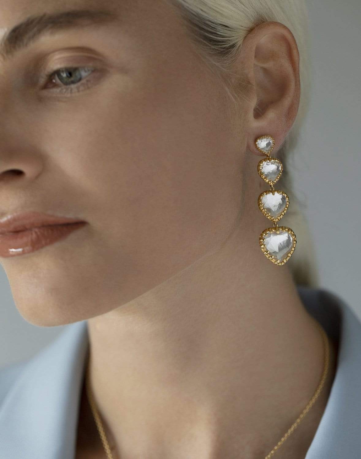 Larkspur & Hawk Valentina "I Love NY" 4-drop earrings of 18k yellow gold washed sterling silver, white quartz, and white foil. As it is known to do, Spring fills one’s heart with optimism, simply through the appearance of long-slumbering blossoms and the promise of warm weather. It gives us a resurgence of energy as we embark on what we believe to be the prettiest of seasons in New York City. A year has now passed since Emily began to design Valentina and she could not have arrived at a better time to be worn, as people begin to venture outside and reunite with friends, family, and favorite destinations, be it in New York City or anywhere in the world.