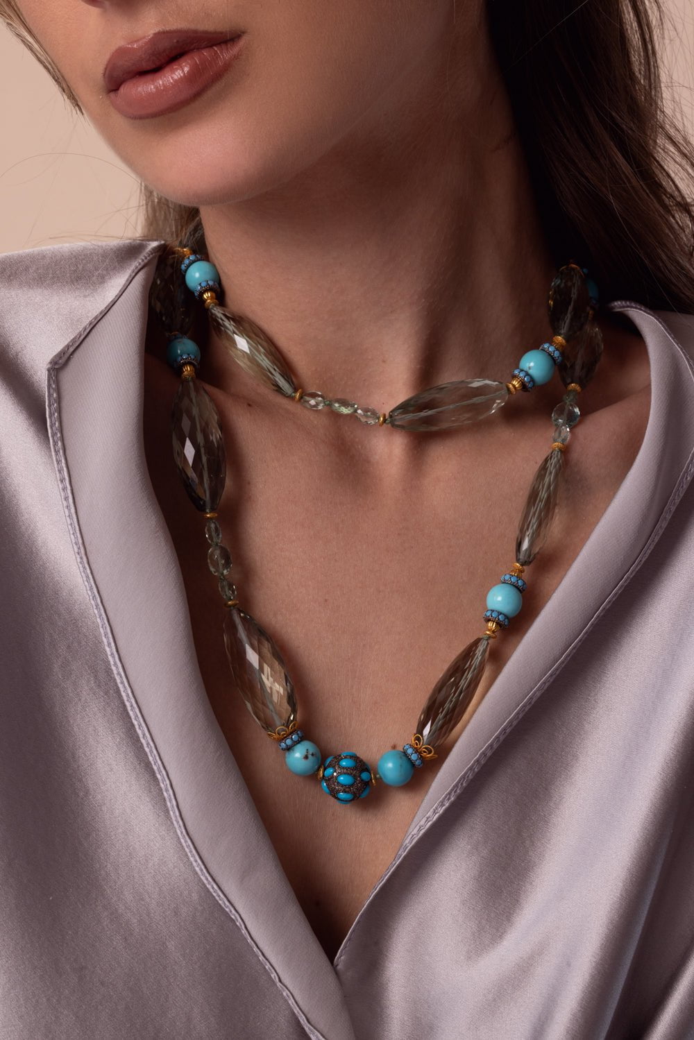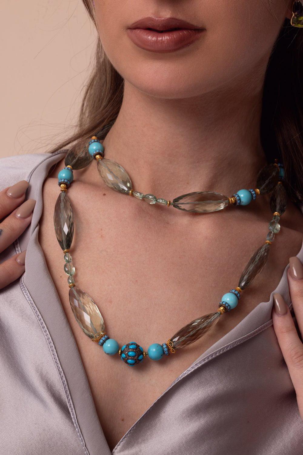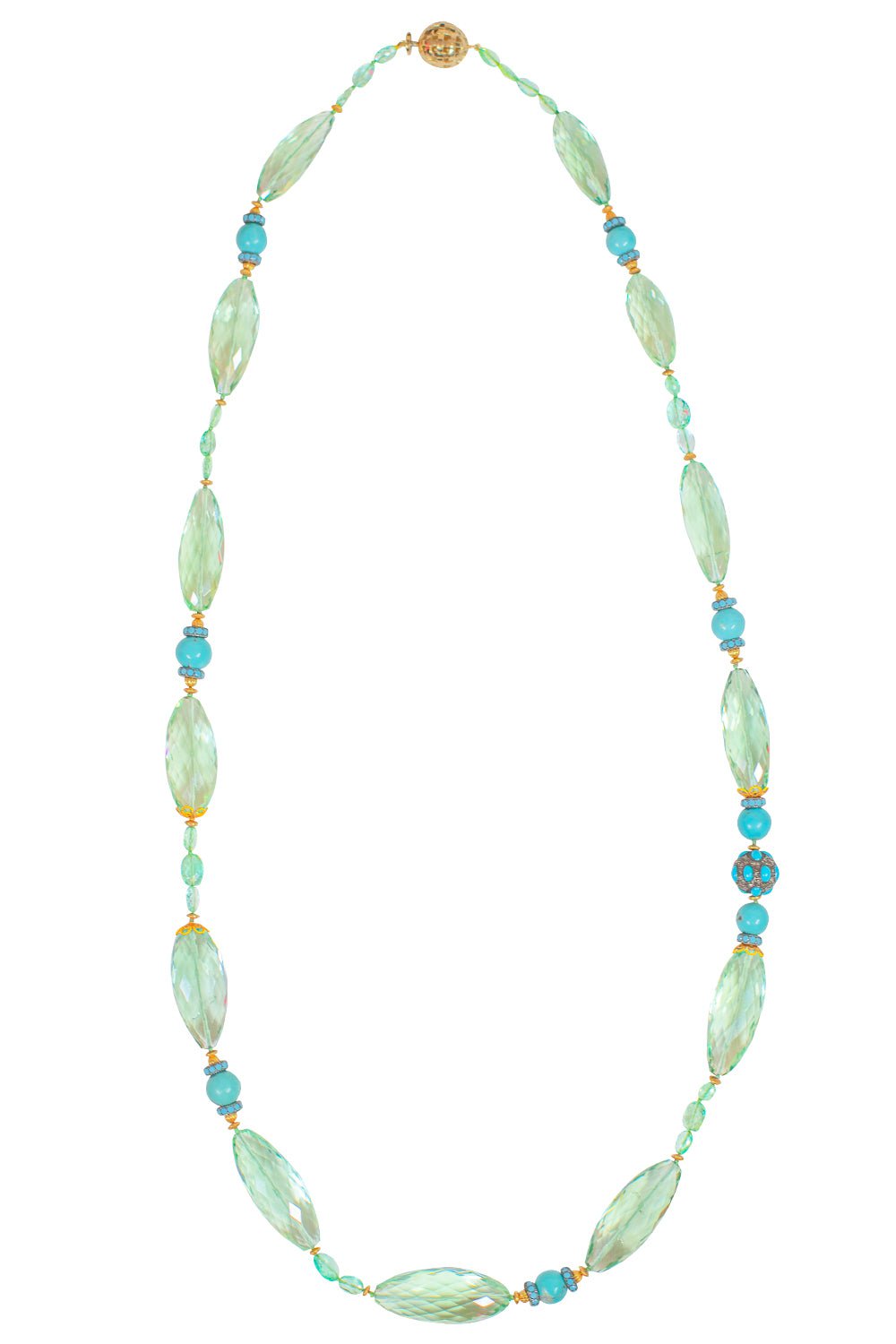 Verdura praiolite emerald turquoise beaded necklace in yellow gold.