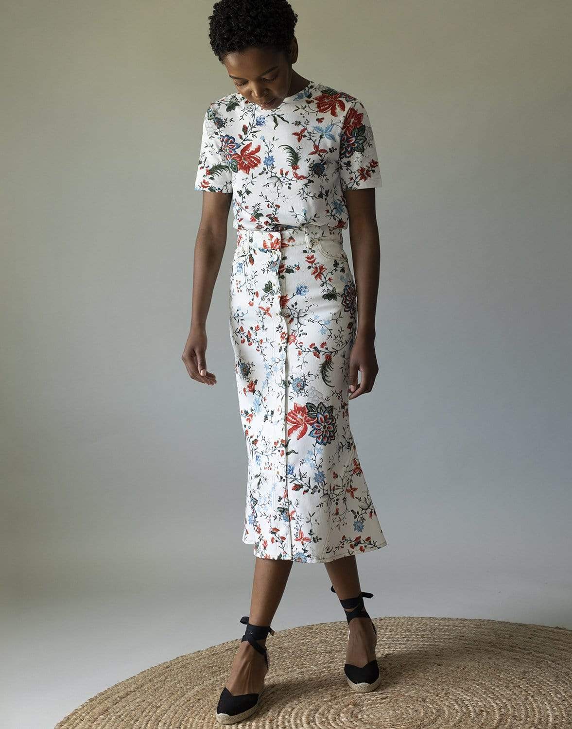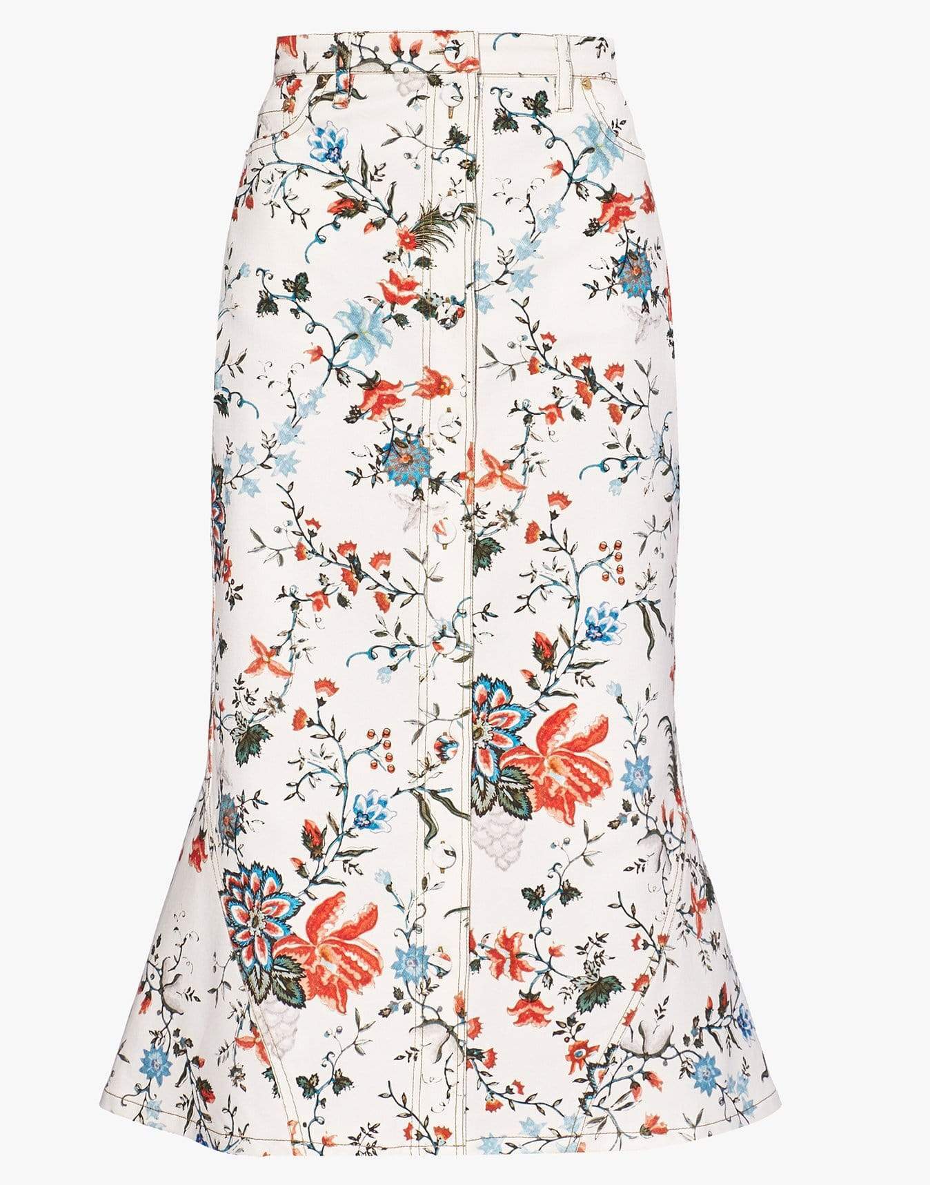 Erdem's white Victorine skirt is printed with a floral pattern echoing the verdant surroundings of Epping Forest, which act as inspiration for the piece. It's crafted from denim with a slender waist and flares outwards at the hem, then is finished with coordinating buttons.