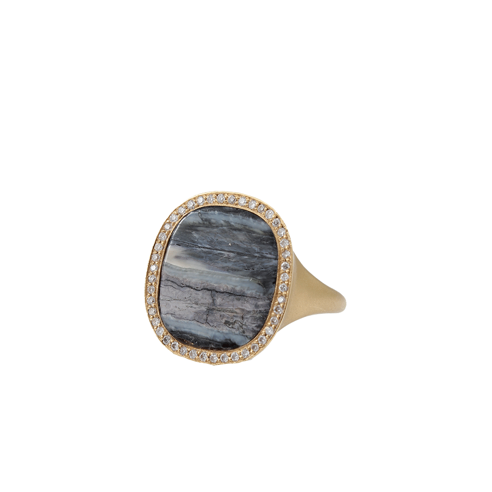 Vivid Blue Fossilized Woolly Mammoth Tooth Root Ring With Diamond Pave From Monique Pean