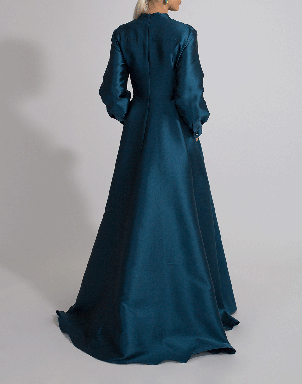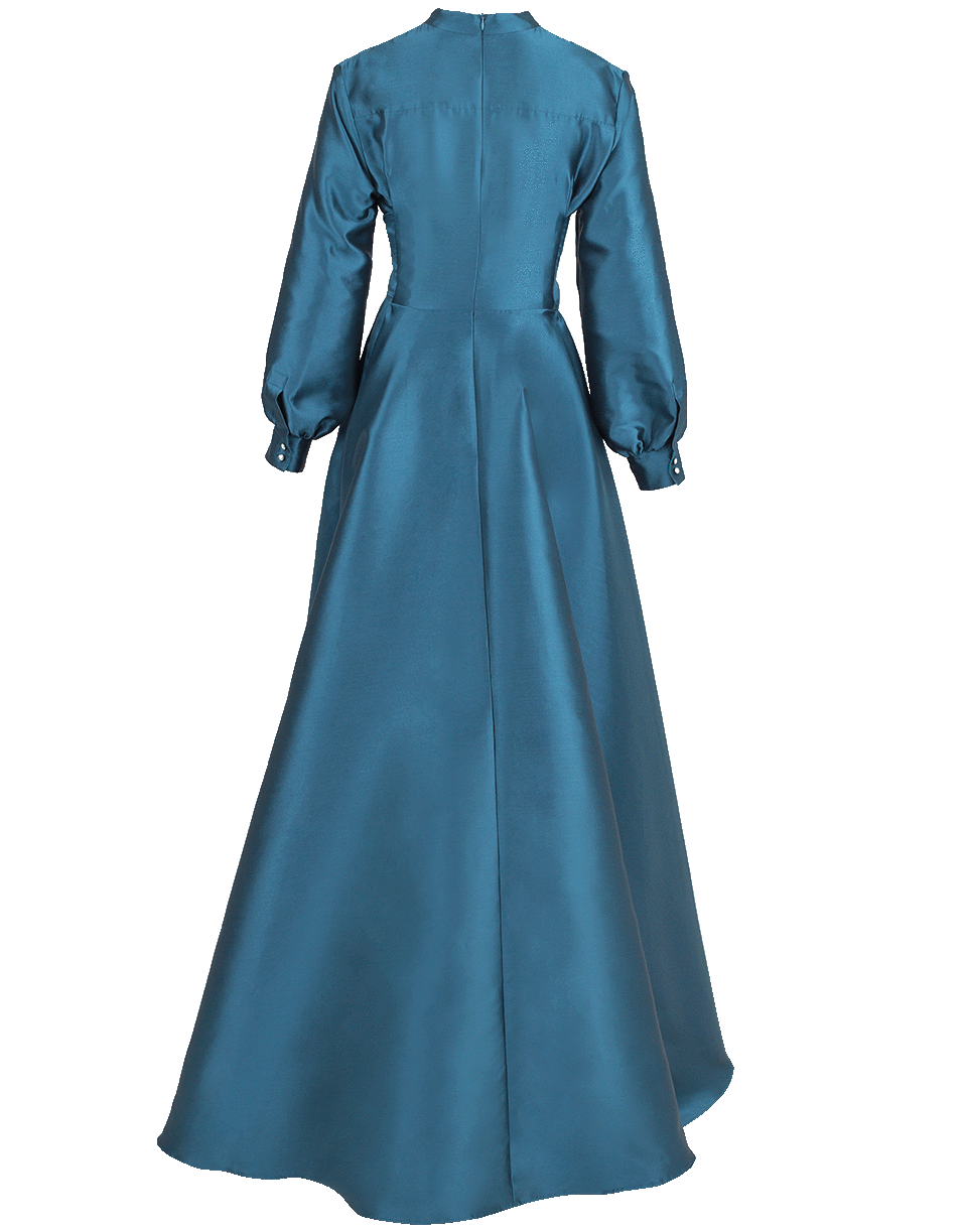Mock Collar With Front Button And Back Zip Closures, Long Sleeves