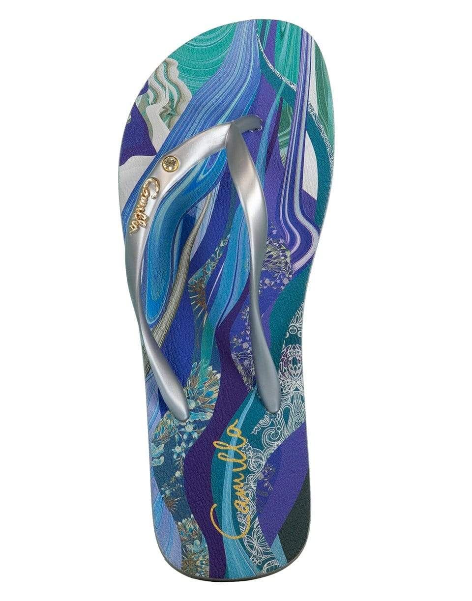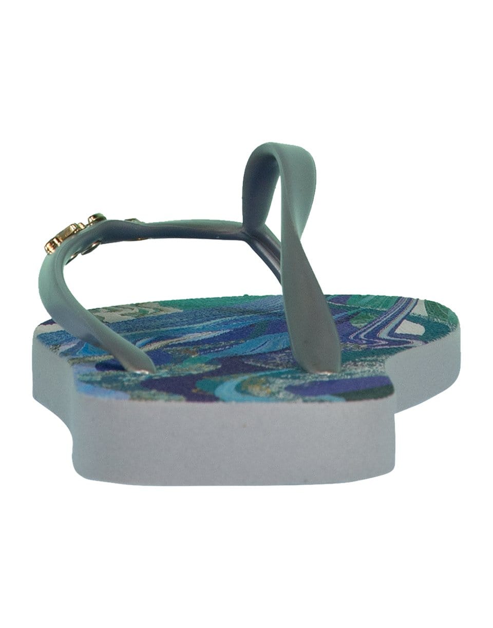 Rubber Wategos Wanderlust thong sandal from Camilla featuring an open toe, rubber printed sole, gold tone Camilla logo and crystal embellishment on the strap.