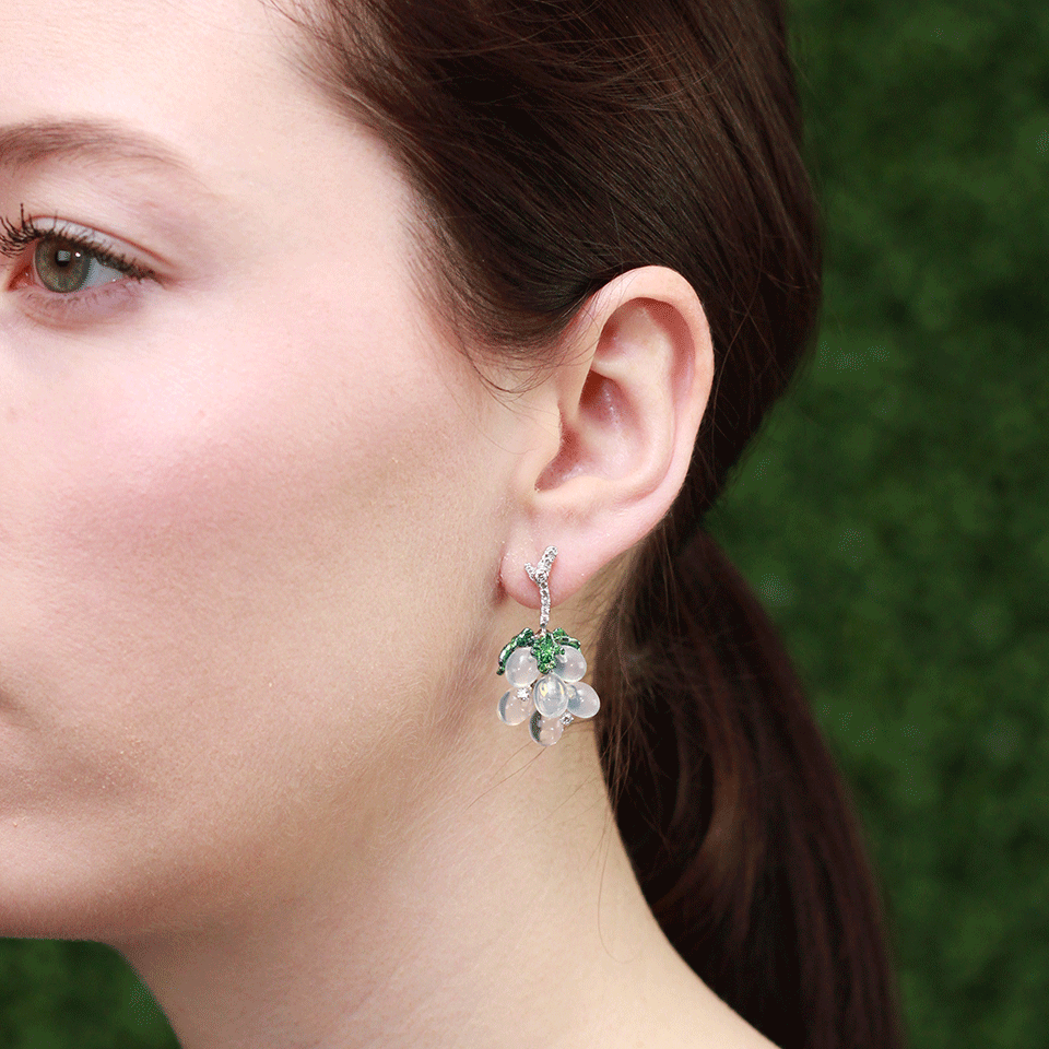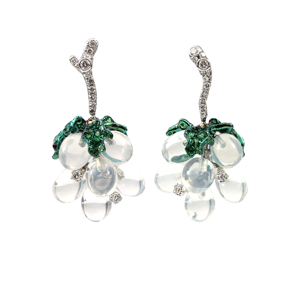 Water Opal Grape Earrings With Tsavorite And Diamonds From Arunashi