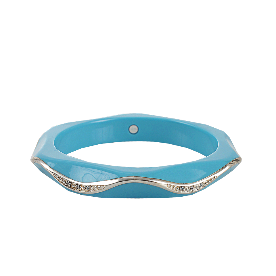 Let the color waves take over and add a bit of radiance to your ensemble with this wavy turquoise bangle with cubic zirconia by Miriam Salat.