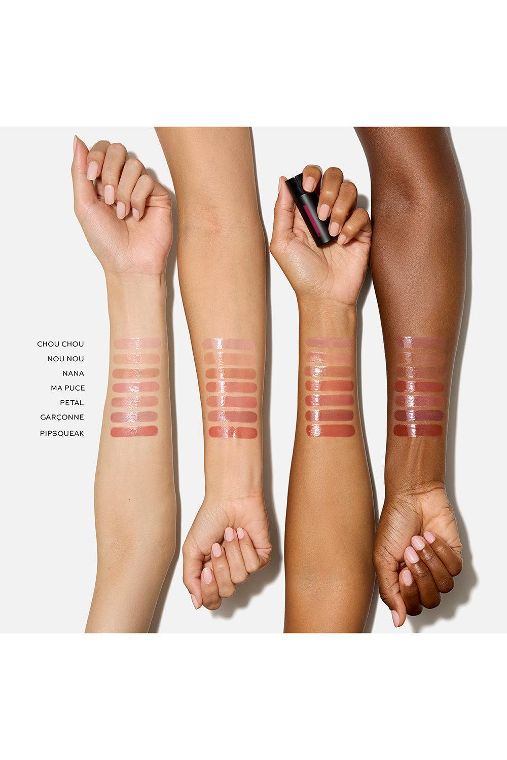 Sheer lip-boosting shades melt on contact to enhance tone in a single swipe. Wear alone or layer over Lip Suede Matte Lipstick to add depth and shine without stickiness.