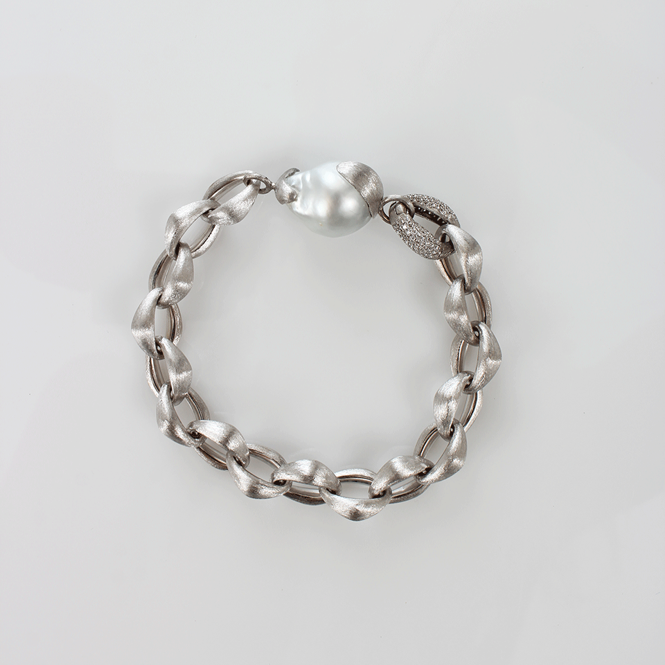 Encircle your wrist with the deep sea treasure of Yvel’s multi color baroque fresh water pearl bracelet. 0.75” x 0.63” Pearl Diamonds (1.36 CTW) 8.5” Length, 0.38” Width Foldover Closure Available in 18K White Gold