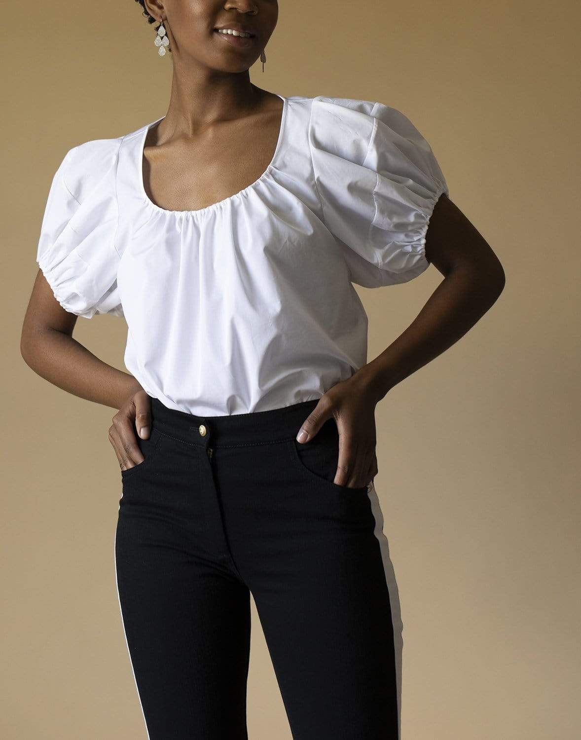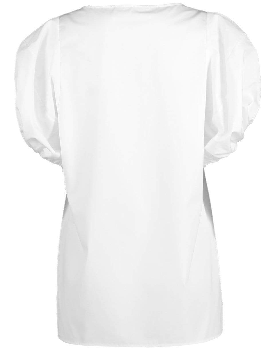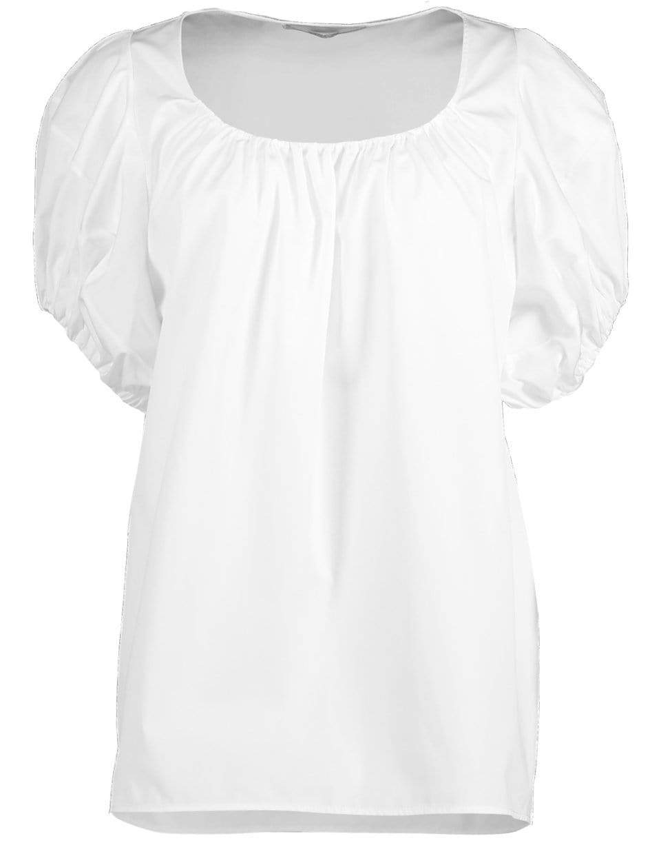 Stella McCartney 'Elsa' cotton poplin, short-sleeve top, with ruffle neckline. This product is made in sustainable cotton.