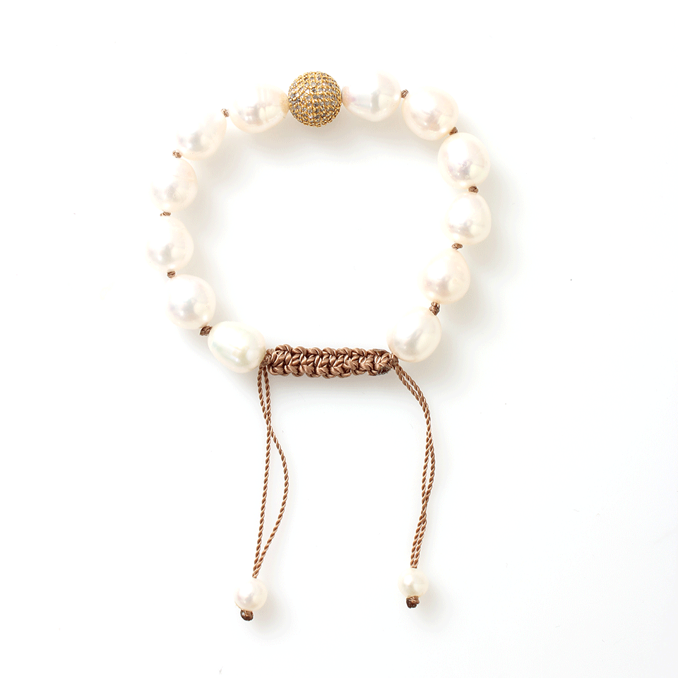White Freshwater Pearl Bracelet With Round Champagne Diamond Pave Bead From Jordan Alexander