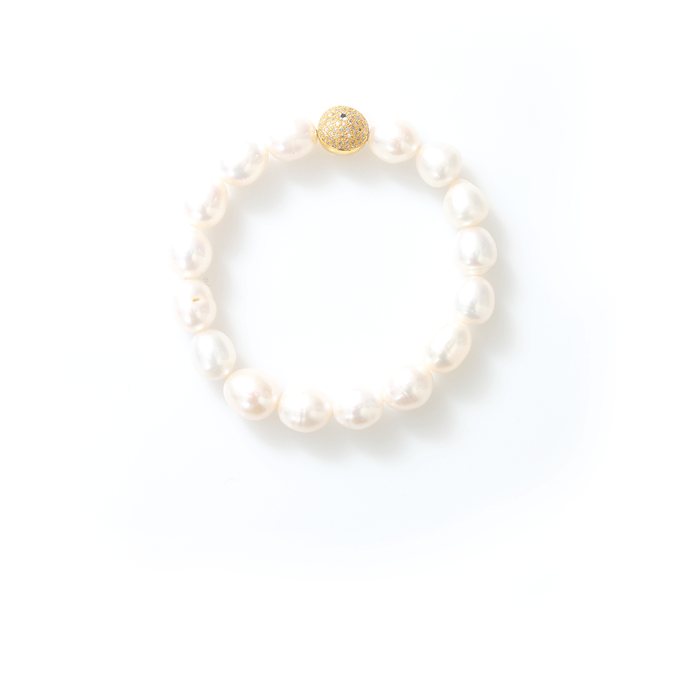 White Pearl Bracelet With One Half Diamond Bead From Jordan Alexander