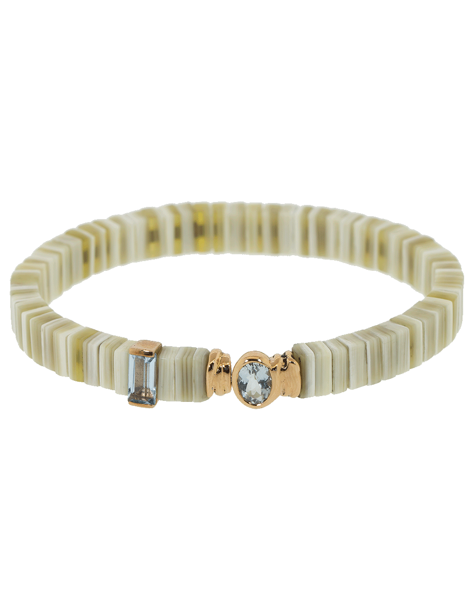 White zebru horn bracelet with oval aquamarine and baguette blue topaz from Federica Rettore.