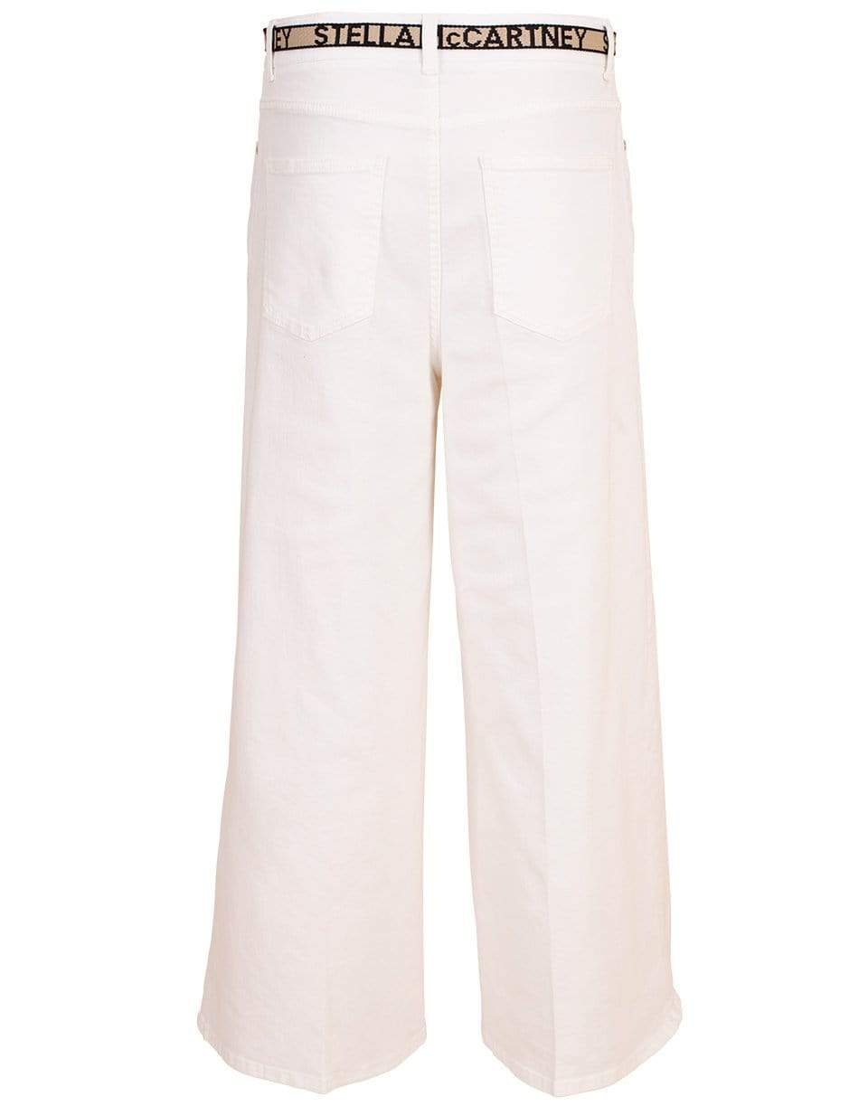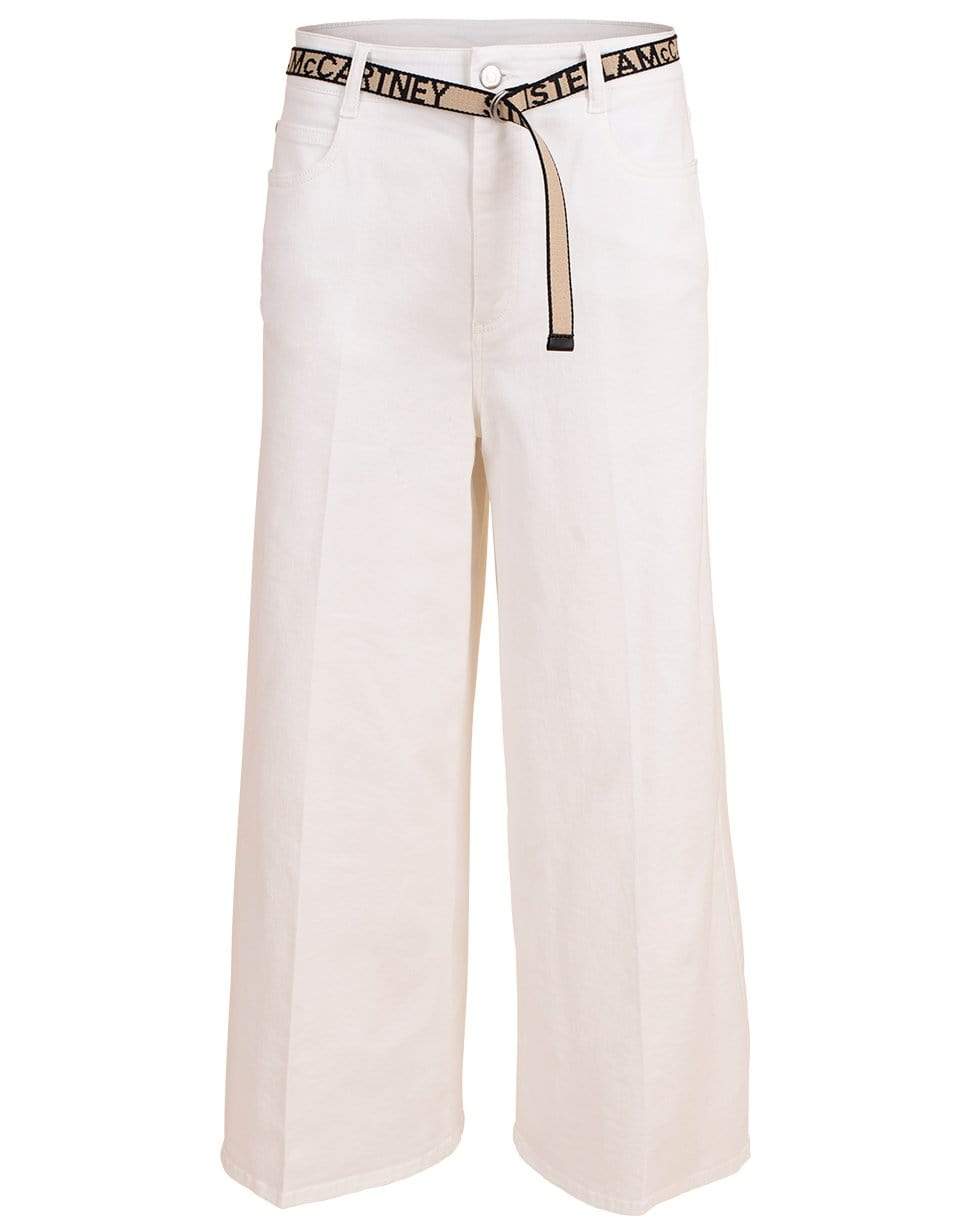 Stella McCartney cropped wide leg denim pant with a mid-rise, zip fly, 5-pocket style, and a detatchable logo D-ring belt.