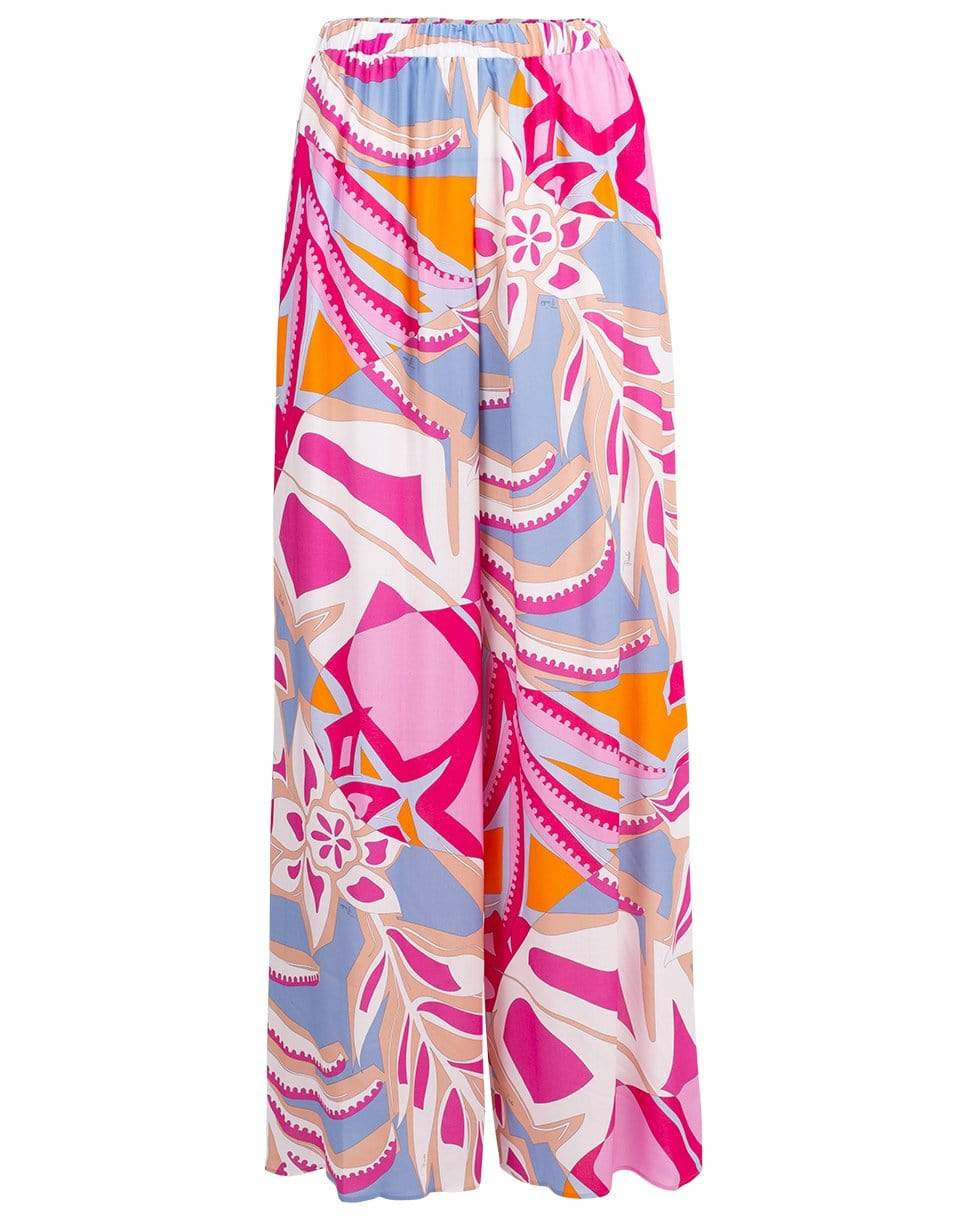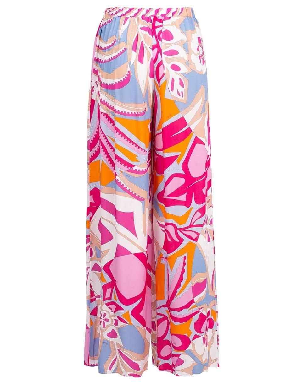 Floral print pull-on pant from Emilio Pucci featuring a relaxed fit with a high-rise, wide leg, and pull on style.