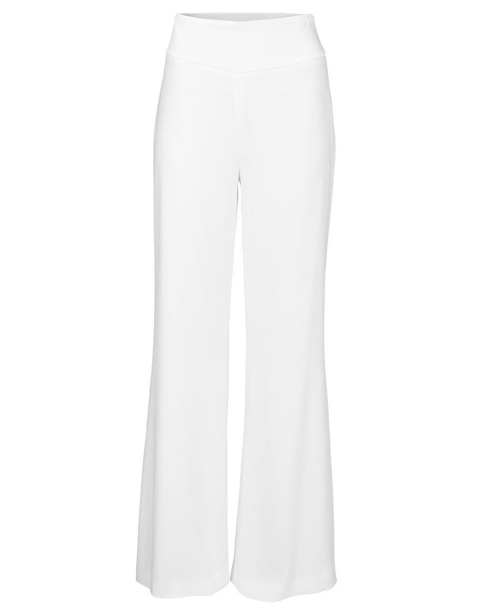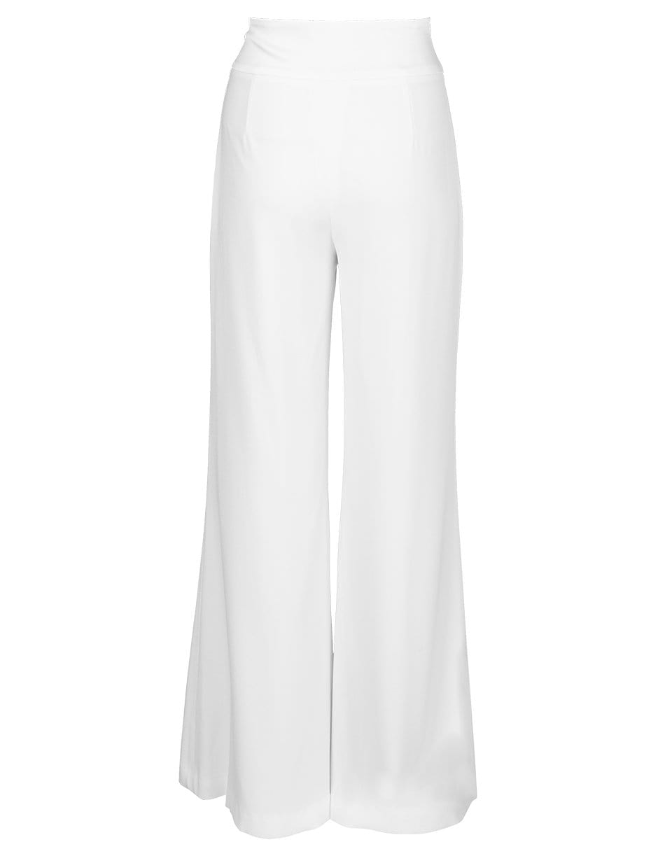 Galvan London white satin high waisted trousers with a wide leg and side zip closure.