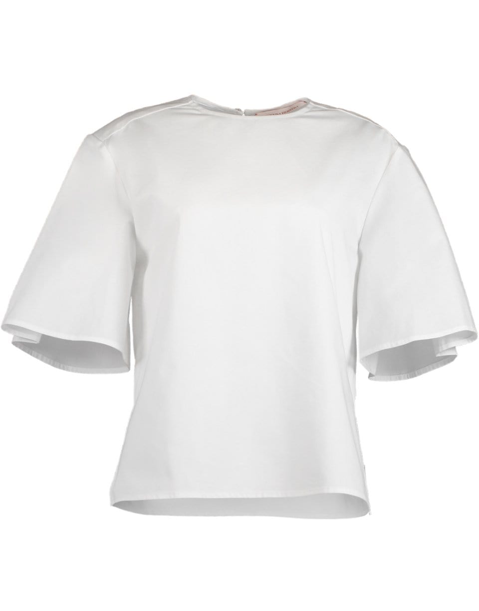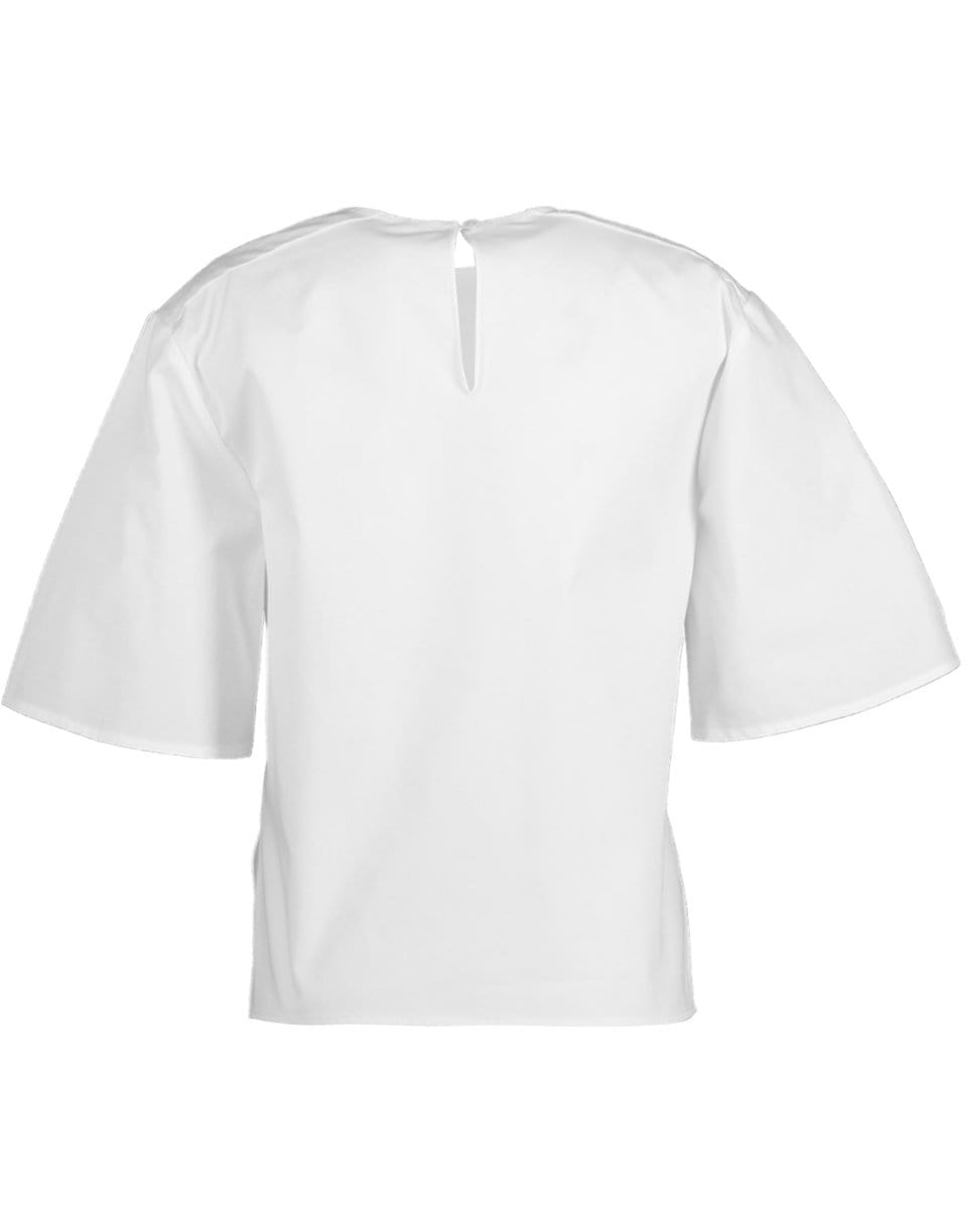 Carolina Herrera wide pleat sleeve crewneck top with a round neck, keyhole detail at back, and a regular fit..