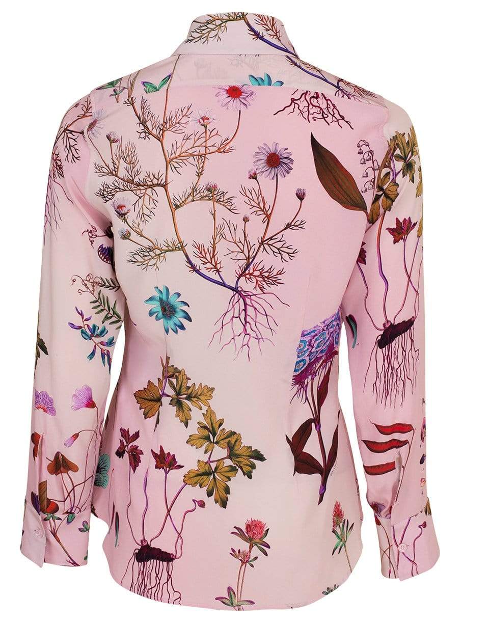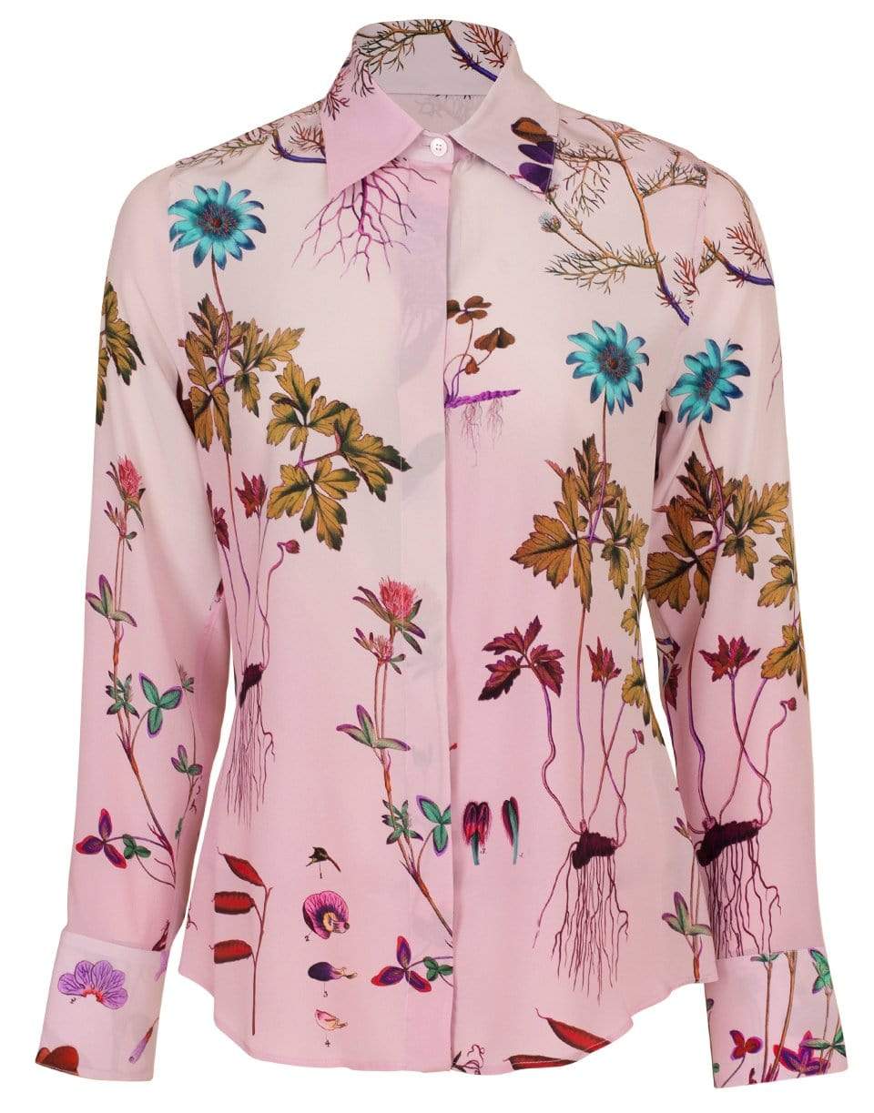 Stella McCartney silk willow floral blouse with a pointed collar, concealed button placket, multi-colored floral print, long sleeves, curved hem and a slim fit.