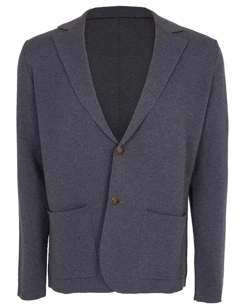 Grey wool sweater jacket from Eleventy featuring a classic cut with a notched lapels, side patch pockets, two front button closure, and a slim fit.