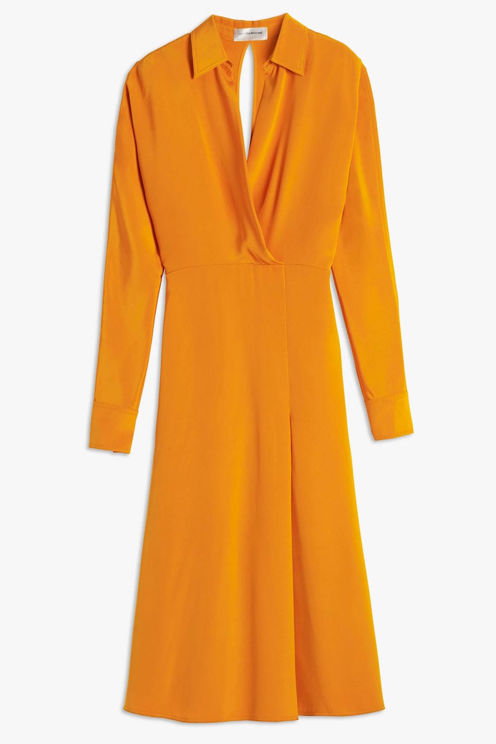 Victoria Beckham wrap front long sleeve midi dress in burnt orange.
